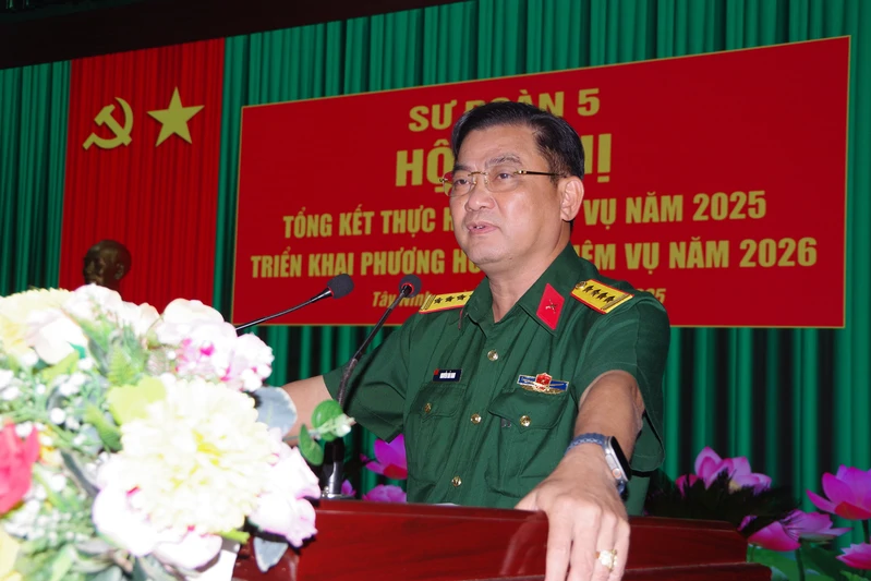 (QK7 Online) - Ngày 27/11, Sư đoàn 5 tổ chức hội nghị tổng kết thực hiện nhiệm vụ năm 2025, triển khai phương hướng nhiệm vụ năm 2026. Đại tá Nguyễn Hải Nam, Sư đoàn trưởng Sư đoàn chủ trì hội nghị. Dự hội nghị có Đại tá Trần Hoàng Giang, Bí thư Đảng ủy, Chính ủy Sư đoàn; các đồng chí trong Đảng ủy, chỉ huy Sư đoàn, đại diện các cơ quan của Bộ Tham mưu Quân khu.