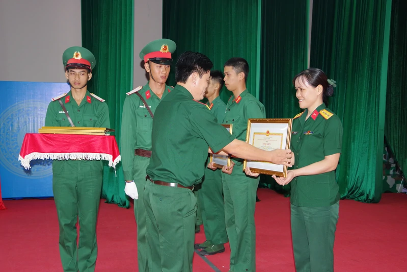 Đại tá Nguyễn Hải Nam trao bằng khen của Bộ trưởng Bộ Quốc phòng khen thưởng cho các tập thể đã có thành tích xuất sắc trong công tác từ năm 2023 đến năm 2024, góp phần vào sự nghiệp xây dựng Quân đội, củng cố quốc phòng và bảo vệ Tổ quốc.