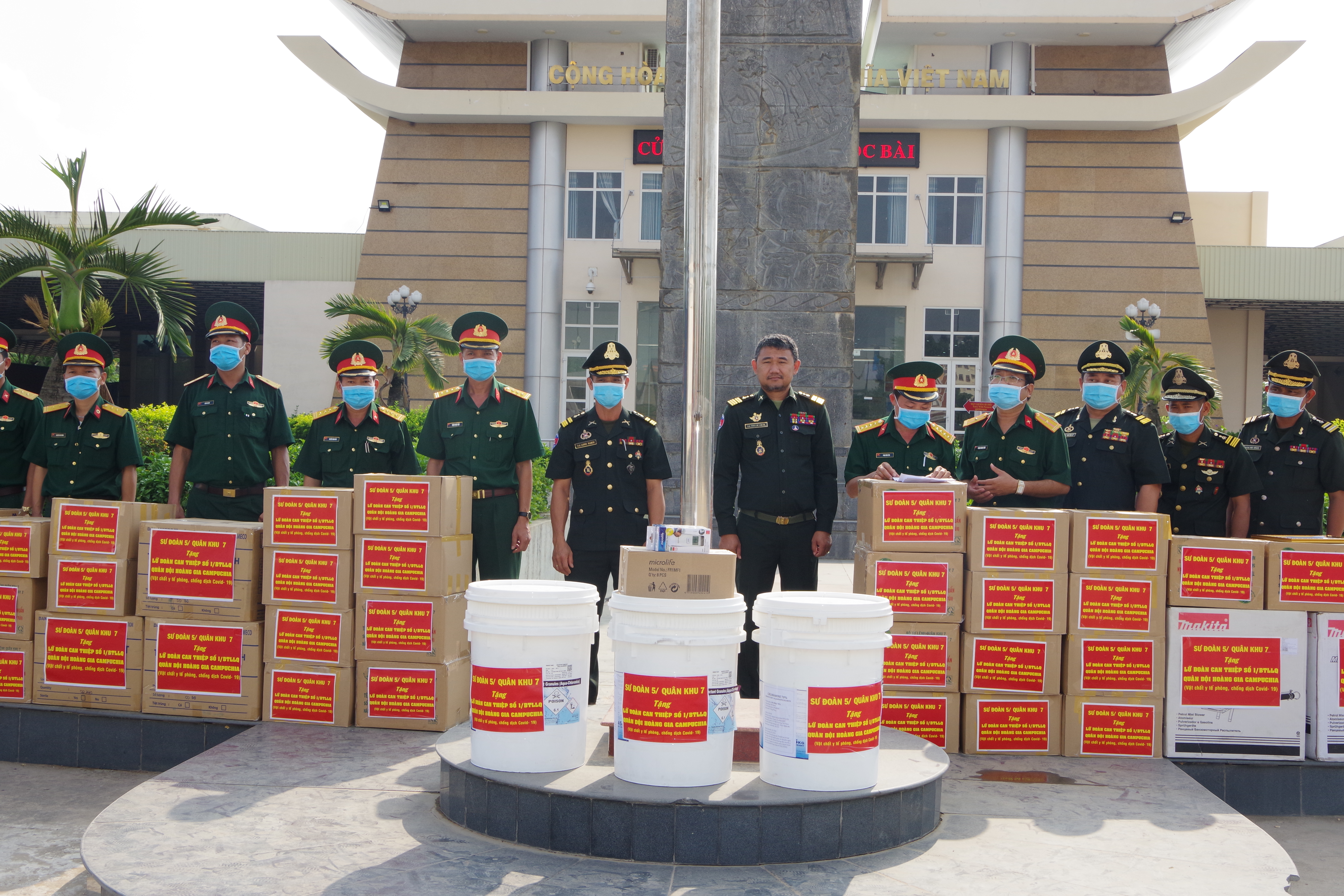 Sư đoàn 5 tặng Lữ đoàn can thiệp số 1, Bộ Tư lệnh Lục quân, Quân đội Hoàng gia Campuchia dụng cụ, vật tư y tế.