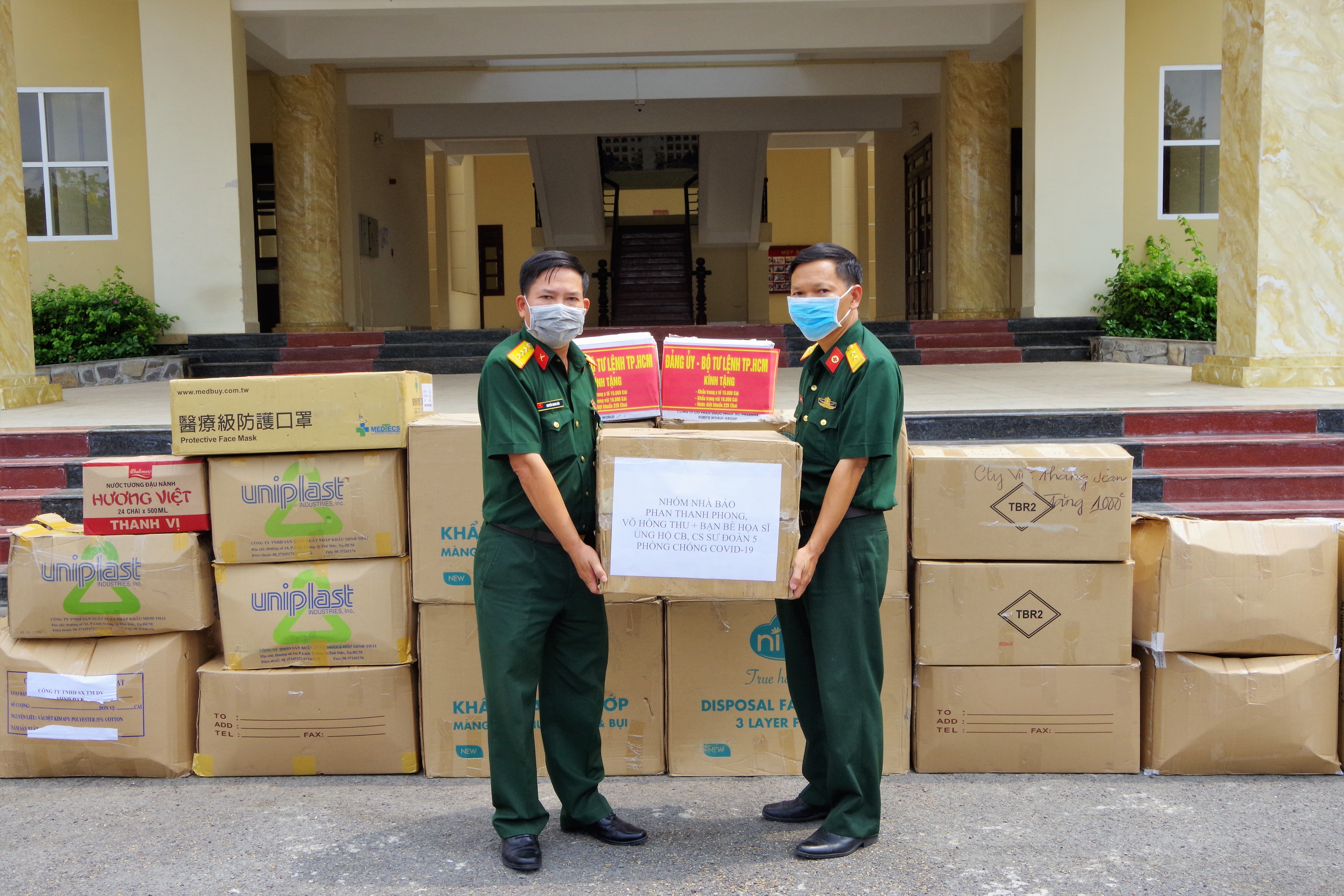 Theo đó, từ đầu tháng 3/2020, một mặt đơn vị chủ động liên hệ nguồn hàng y tế để mua theo chỉ tiêu ngân sách được phân bổ; mặt khác, chủ động liên hệ với các tổ chức, cá nhân, các mạnh thường quân giúp đỡ. Chỉ trong thời gian ngắn, Sư đoàn 5 nhận được đầy đủ các tiêu chuẩn Quân khu cấp xuống, các tổ chức, cá nhân ủng hộ, giúp đỡ như Bộ Tư lệnh Thành phố Hồ Chí Minh; Sở Y tế tỉnh Tây Ninh; Ban Thanh niên, Công đoàn, Phụ nữ Quân khu, Bệnh viện Quân y 7A. Nhóm Nhà báo Phan Thanh Phong (Báo Nhân dân), Nhà báo Võ Hồng Thu (Báo Sức khỏe và Đời sống - Bộ Y tế) và bạn bè họa sĩ Hà Nội; Hoa hậu Tella Chương… Tính đến đầu tháng 4/2020, Sư đoàn nhận được hơn 100 nghìn khẩu trang các loại, trong đó chủ yếu là khẩu trang y tế; 1500 bộ đồ phòng dịch; hàng nghìn lít nước, gói, chai gel sát khuẩn và nhiều máy móc, thiết bị, vật dụng y tế thiết yếu khác, trị giá hàng trăm triệu đồng.