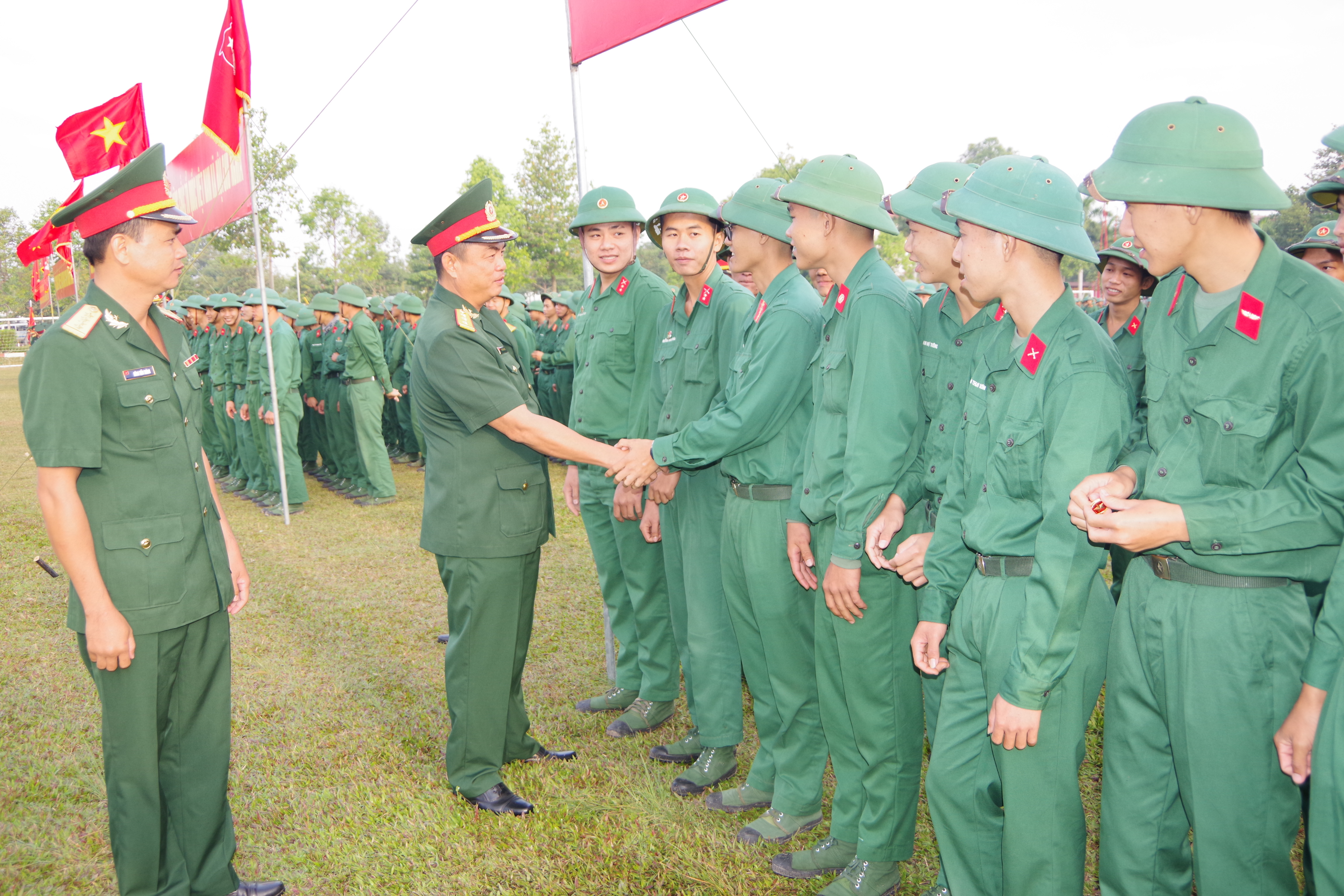 Thượng tá Lê Xuân Bình, Sư đoàn trưởng Sư đoàn 5 động viên chiến sĩ hoàn thành nghĩa vụ quân sự.