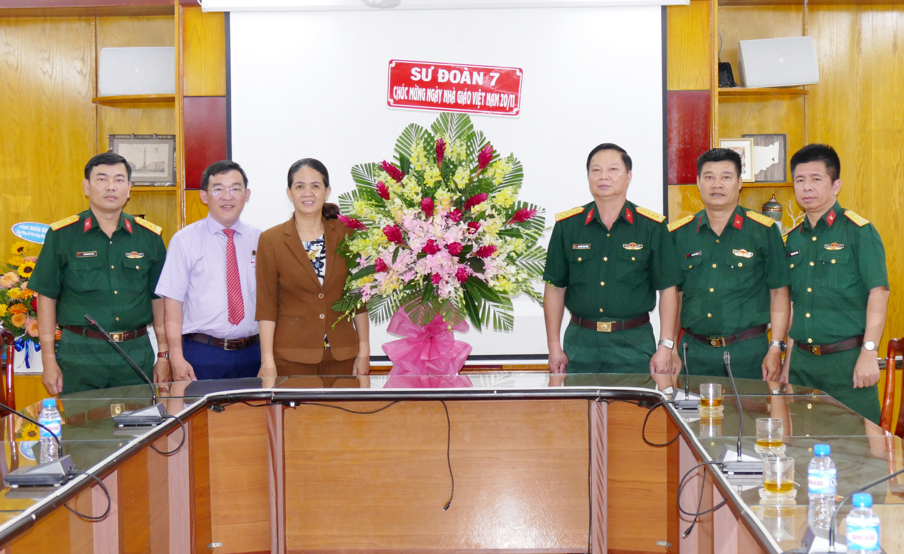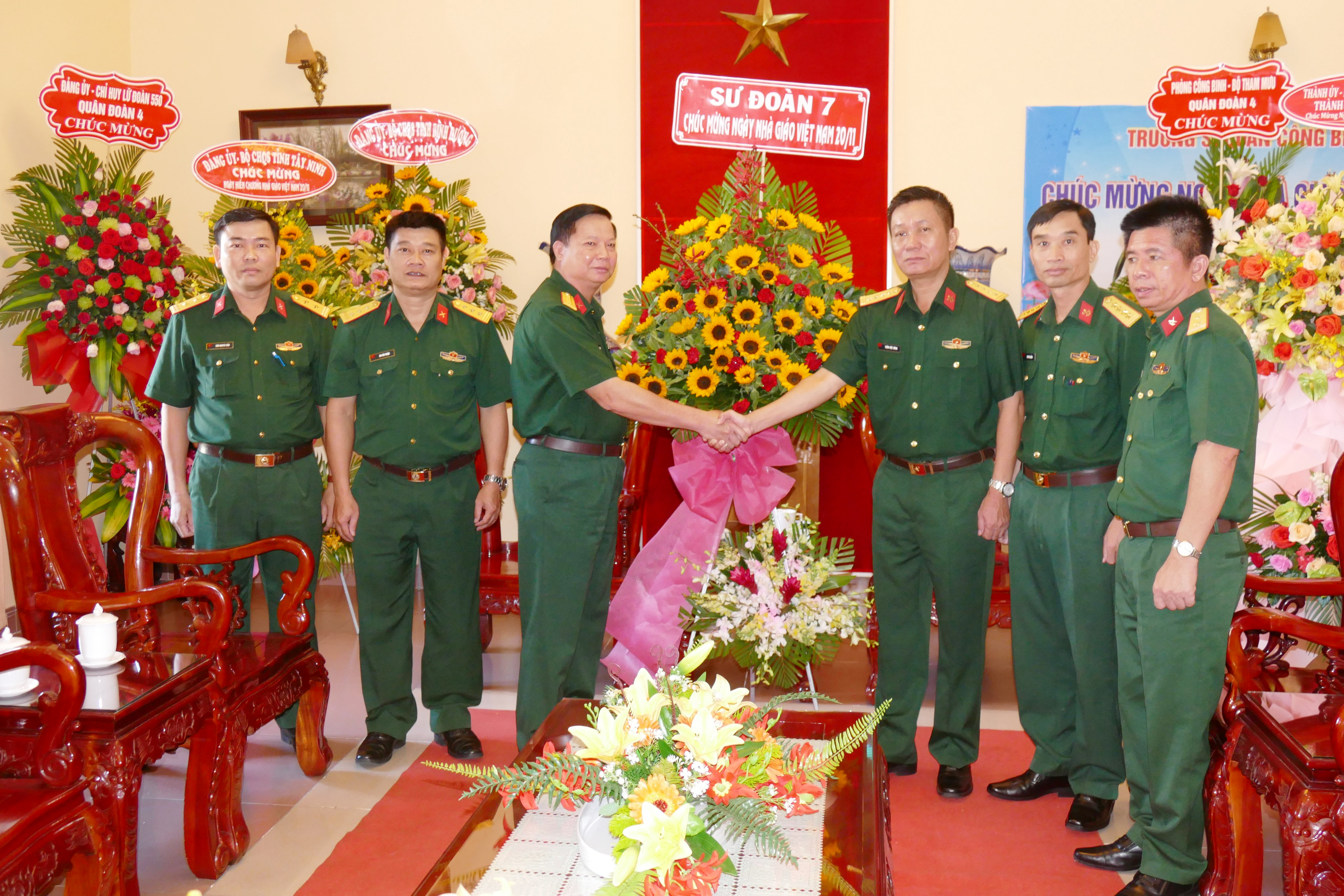 Thay mặt Đảng ủy, chỉ huy sư đoàn, Đại tá Lê Lương Quyền và Đại tá Nguyễn Danh Tâng ân cần thăm hỏi và chúc Ban Giám hiệu các nhà trường luôn mạnh khỏe, hạnh phúc, đoàn kết, thống nhất, luôn đổi mới, sáng tạo, nâng cao chất lượng giáo dục, đào tạo, lãnh đạo xây dựng nhà trường ngày càng phát triển, giữ vững và phát huy kết quả đã đạt được, xây dựng nhà trường vững mạnh toàn diện, hoàn thành thắng lợi mọi nhiệm vụ được giao, xứng đáng là cán bộ, giáo viên, học viên nhà trường trong sự nghiệp trồng người cao quý.