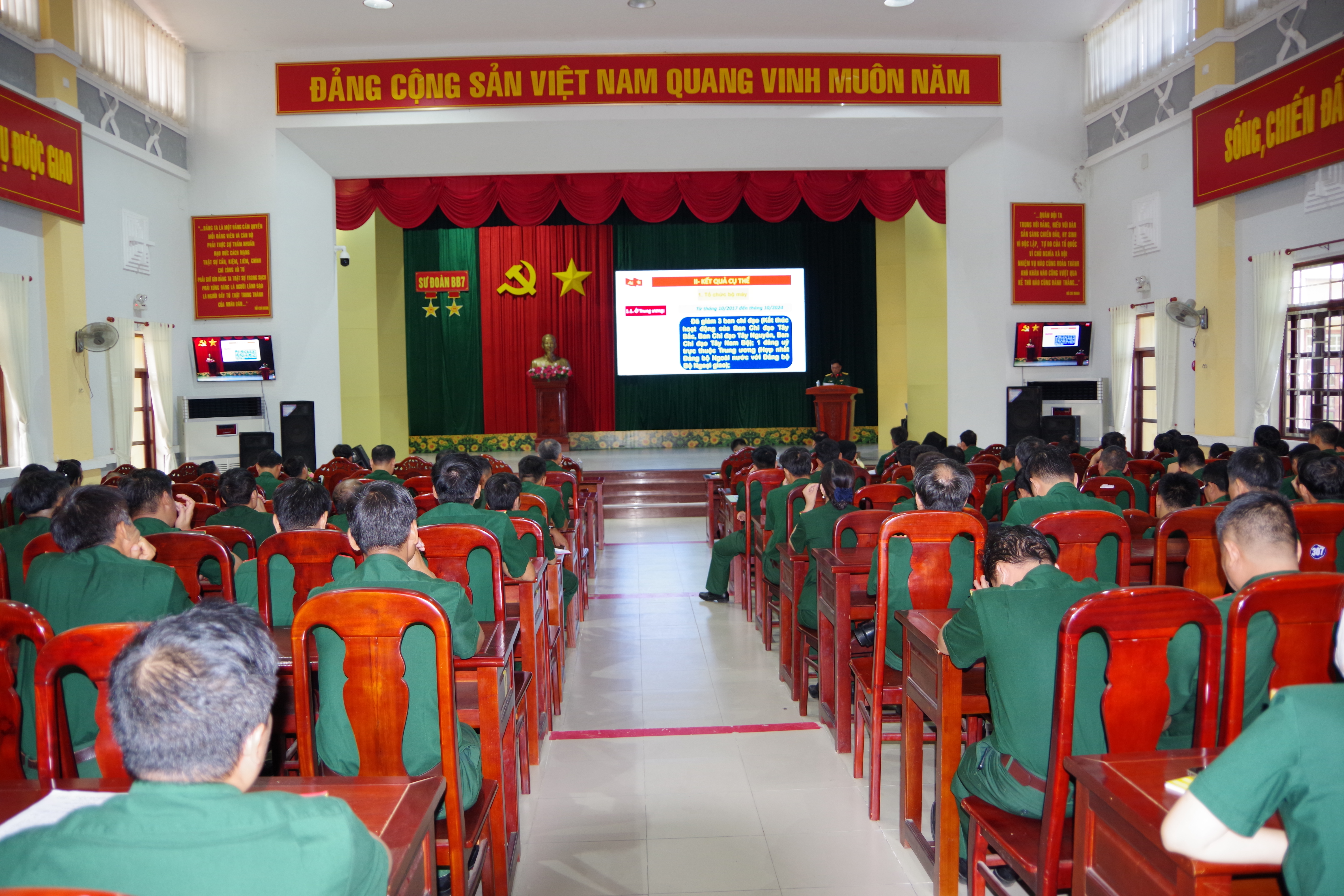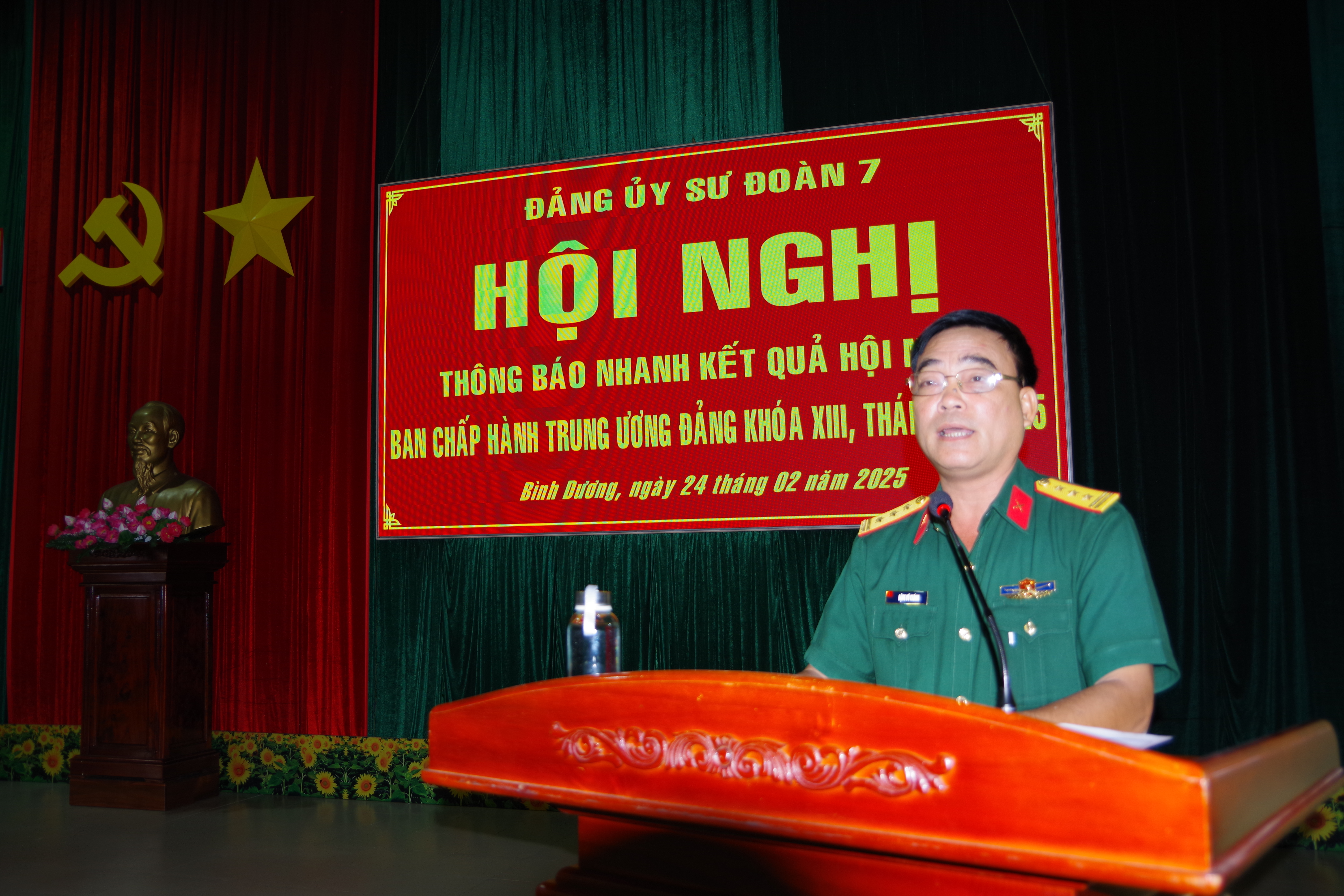 Thượng tá Đặng Vũ Khánh, Phó Chủ nhiệm Chính trị Sư đoàn 7 thông báo nhanh kết quả Hội nghị Ban Chấp hành Trung ương Đảng khóa XIII.