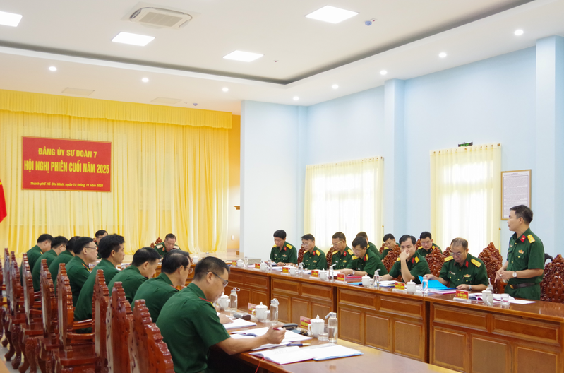 Hội nghị đánh giá năm 2025, Đảng ủy, Chỉ huy Sư đoàn 7, cấp ủy, chỉ huy các cấp đã quán triệt nghiêm túc các nghị quyết, chỉ thị, quy định của cấp trên, lãnh đạo đơn vị hoàn thành tốt nhiệm vụ. Chất lượng huấn luyện, SSCĐ được giữ vững, có nhiều giải pháp đột phá, đổi mới gắn với xây dựng chính quy, rèn luyện kỷ luật. Việc phúc tra nắm nguồn dự bị động viên trên địa bàn các tỉnh theo kế hoạch. Tổ chức diễn tập chỉ huy - cơ quan 1 bên 2 cấp trên bản đồ đạt mục đích, yêu cầu đề ra, bảo đảm an toàn tuyệt đối. Tổ chức tốt các hội thi cấp Sư đoàn và tham gia hội thao, hội thi cấp Quân khu đều đạt kết quả cao. Công tác dân vận, thực hiện quy chế dân chủ ở cơ sở được phát huy, công tác chính sách Quân đội và hậu phương Quân đội được đẩy mạnh, công tác cải cách hành chính chuyển đổi số được giữ vững.