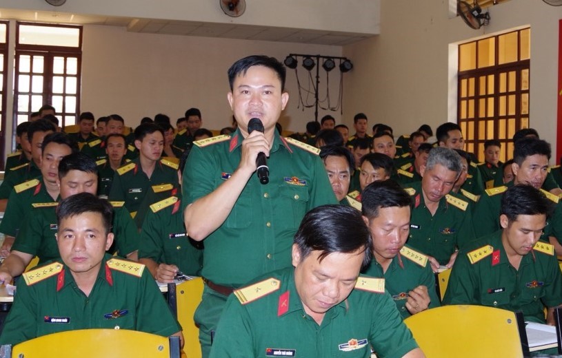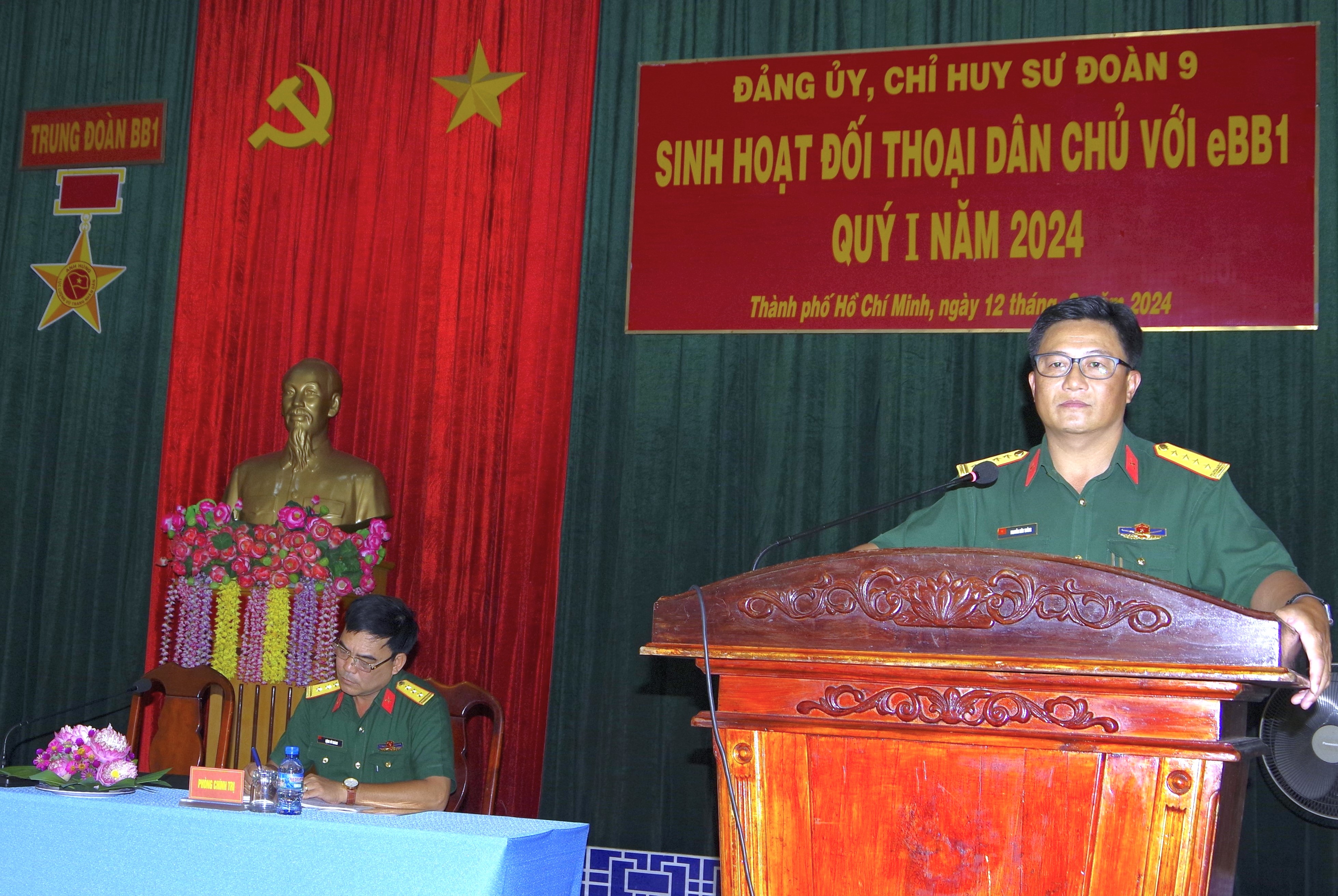 Đại tá Nguyễn Hữu Thắng, Bí thư Đảng ủy, Chính ủy Sư đoàn 9 chủ trì đối thoại với sĩ quan, quân nhân chuyên nghiệp Trung đoàn 1.