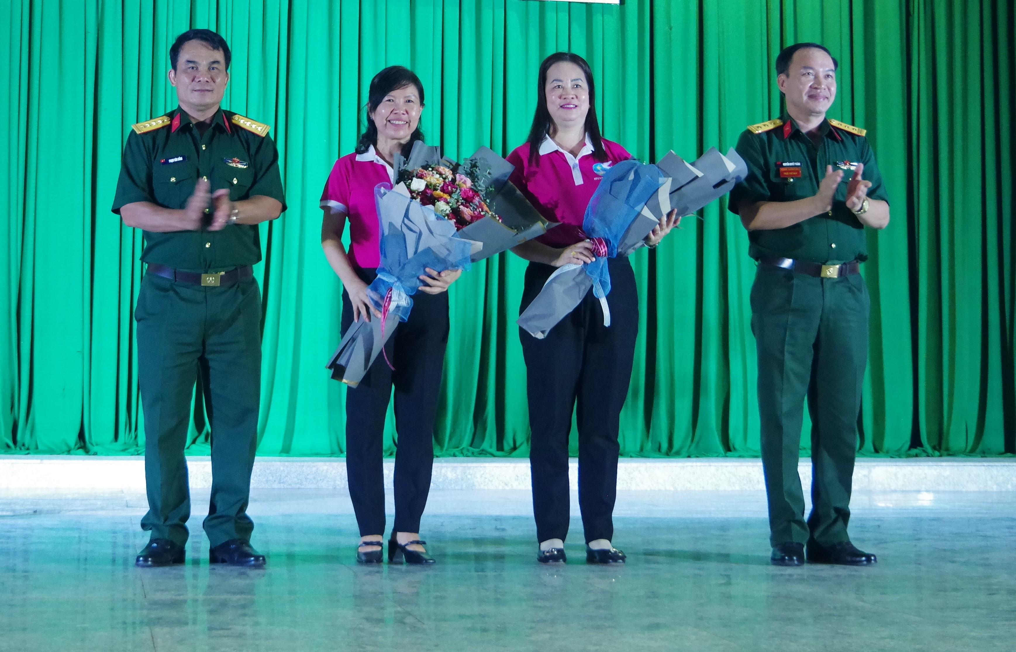Chỉ huy Sư đoàn 9 tặng hoa chúc mừng Hội LHPN huyện Củ Chi.