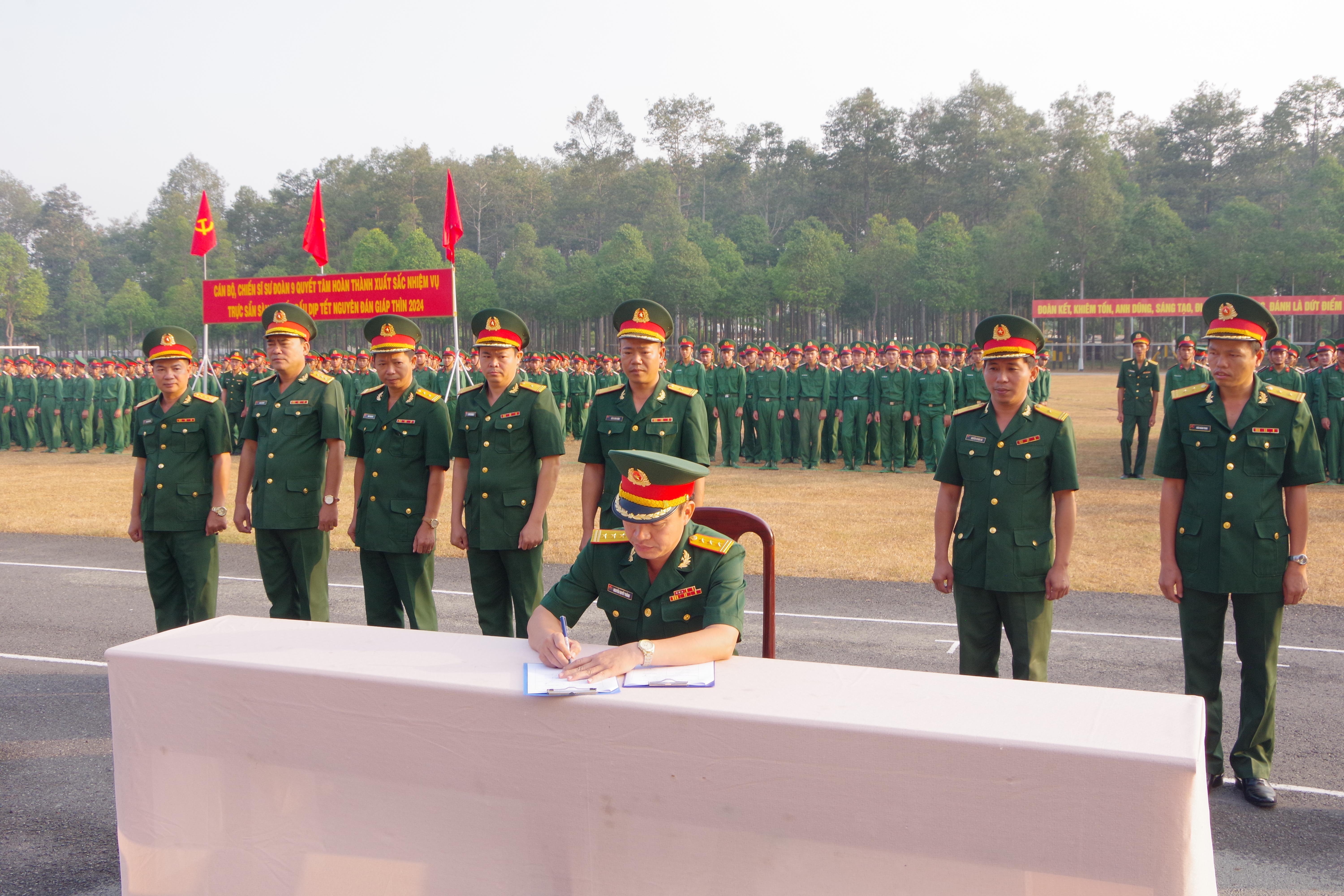 Chỉ huy Sư đoàn 9 chứng kiến ký kết giao ước thi đua của các cơ quan, Tiểu đoàn trực thuộc Sư đoàn.