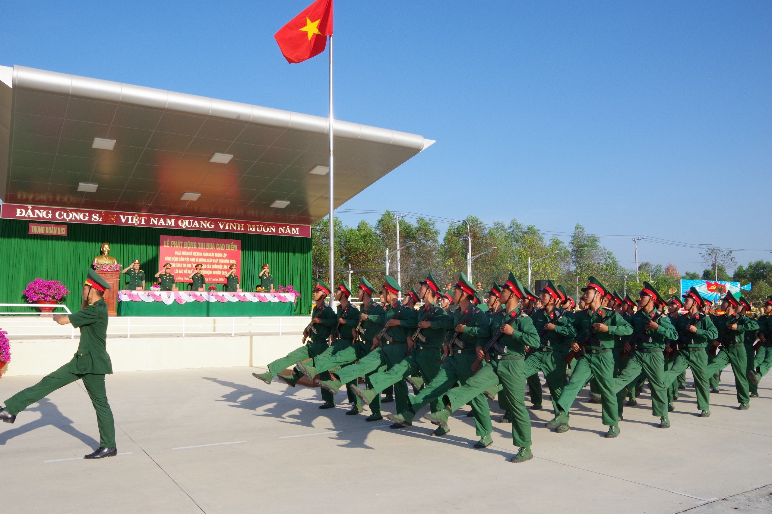 Duyệt đội ngũ trong Lễ phát động thi đua tại Trung đoàn 3.