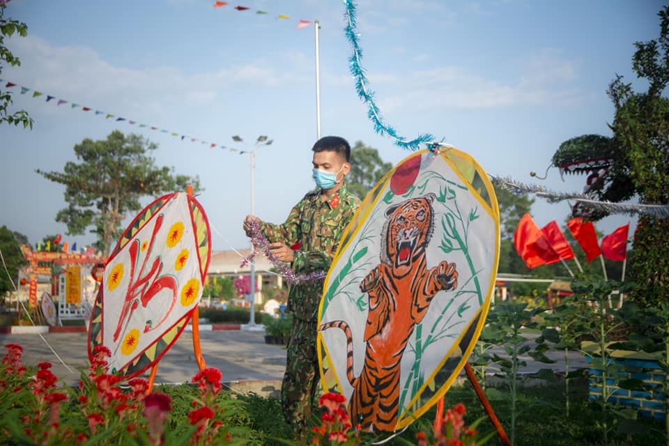 Chiến sĩ Sư đoàn 9 trang trí Tết.