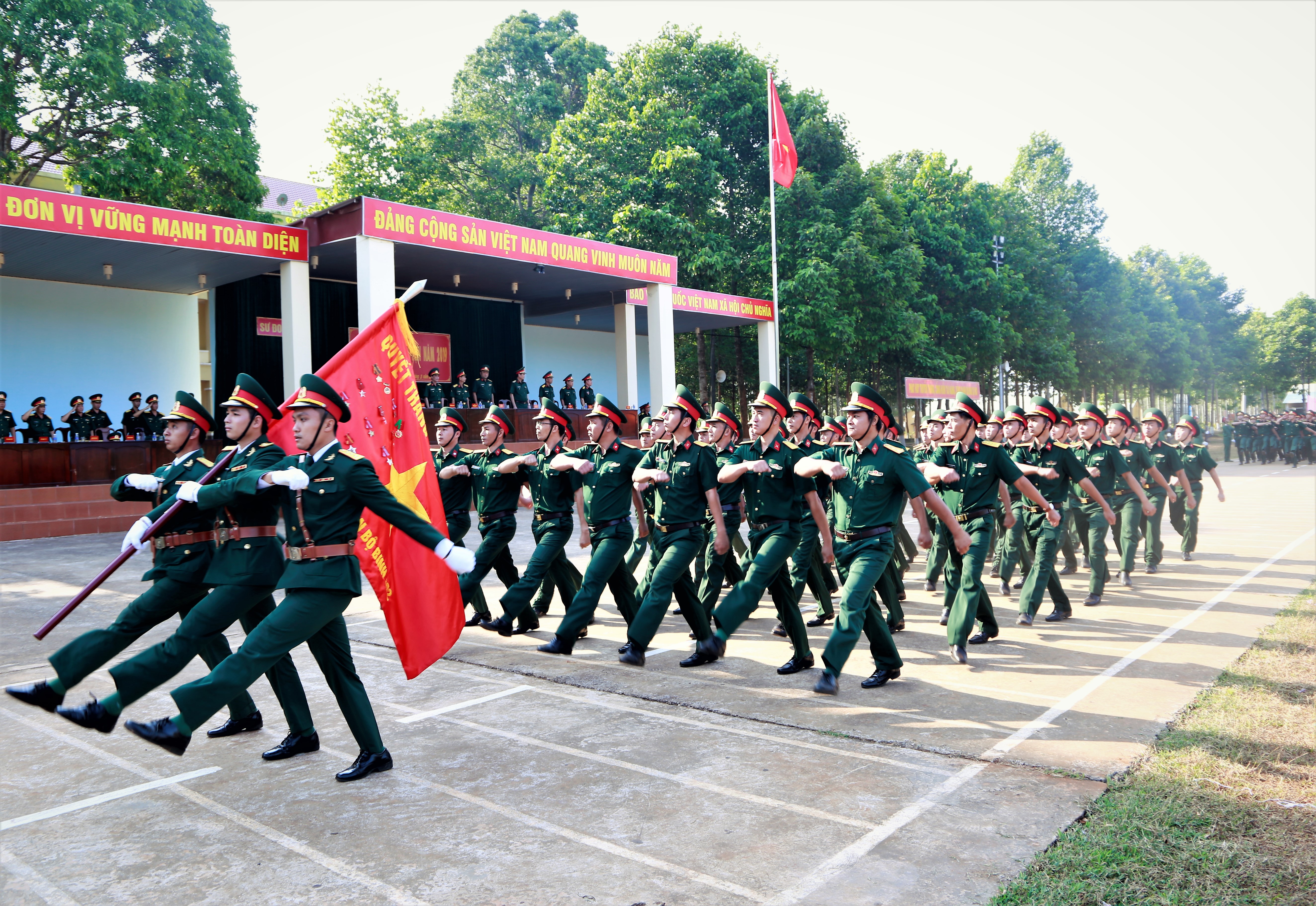 Duyệt đội hình đội ngũ trong lễ ra quân huấn luyện.