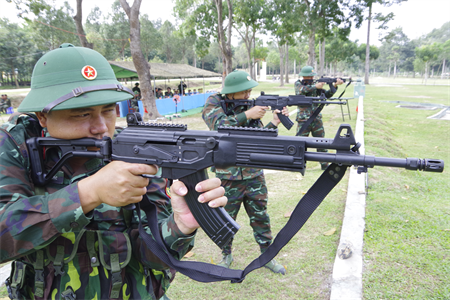 Bộ đội huấn luyện sử dụng súng tiểu liên STV-380. Ảnh: Tuấn Vũ
