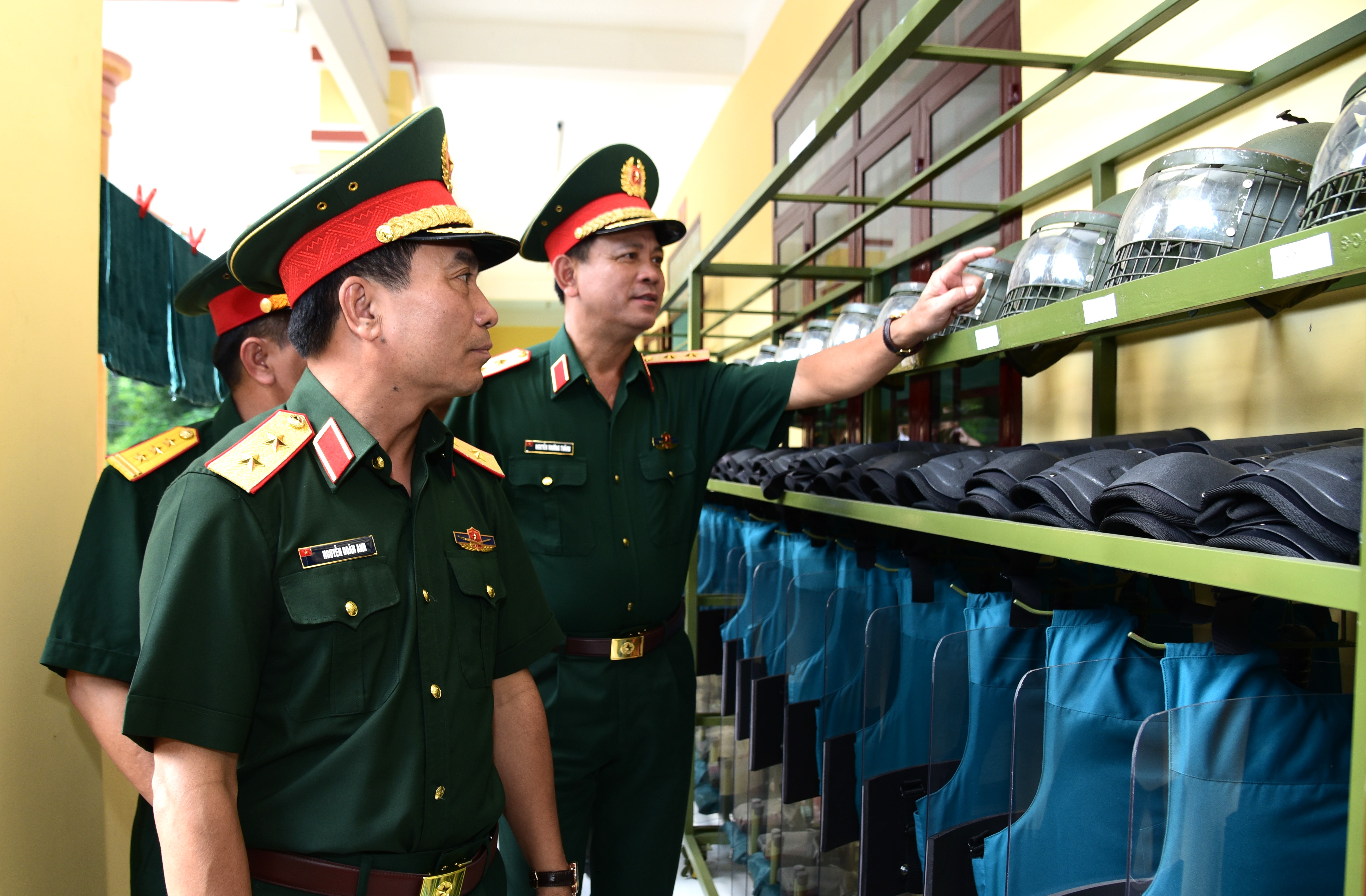 Thủ trưởng Bộ Tổng Tham mưu và Quân khu 7 tham quan kho để vật chất, trang bị kỹ thuật.