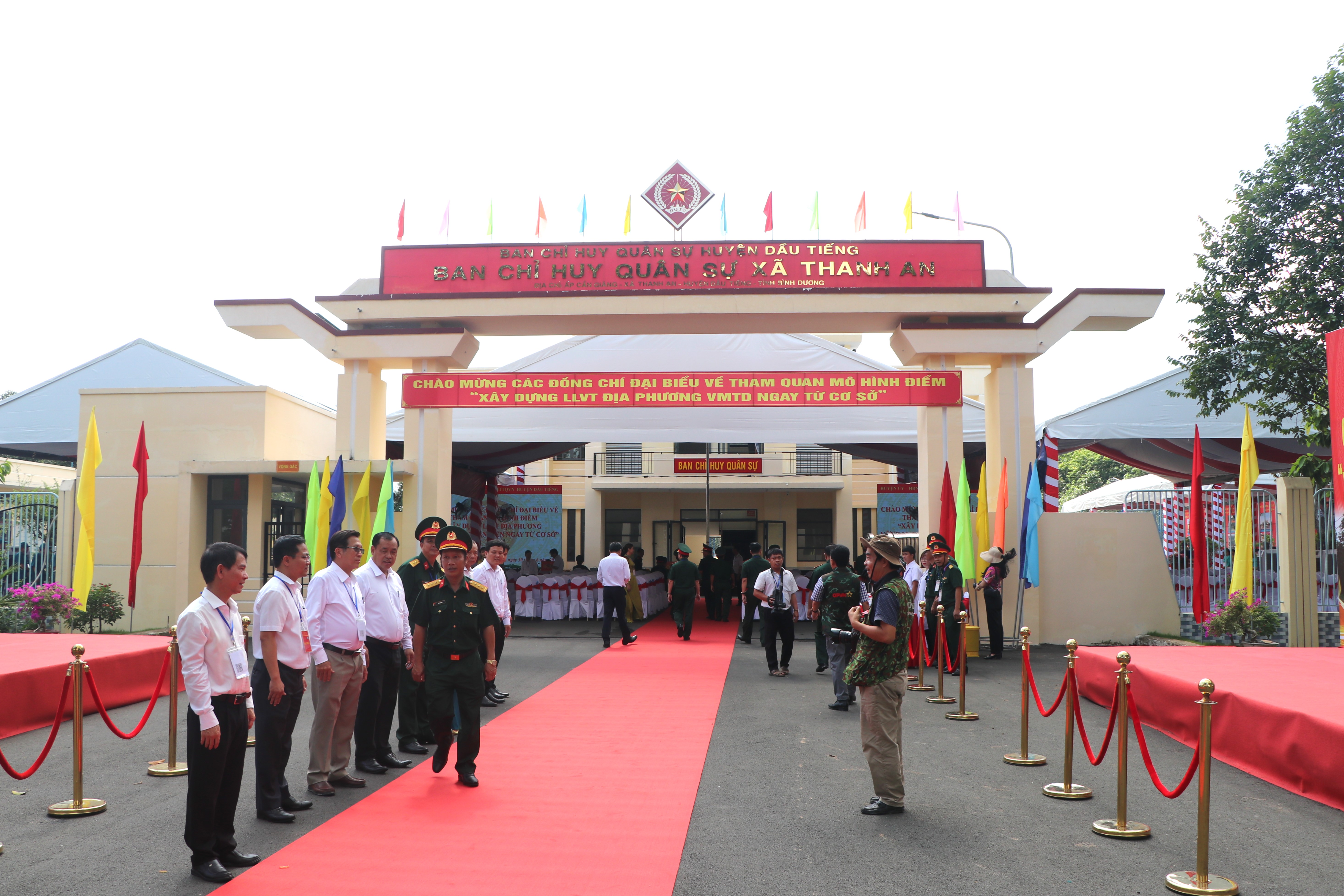 Mô hình xây dựng LLVT vững mạnh toàn diện từ cơ sở (đại biểu tham quan tại Ban CHQS xã Thanh An, huyện Dầu Tiếng, tỉnh Bình Dương):