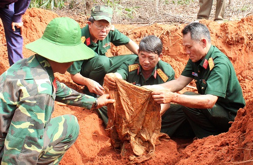 Trung tá Trương Bá Linh trong một lần đi tìm kiếm, cất bốc hài cốt liệt sĩ.