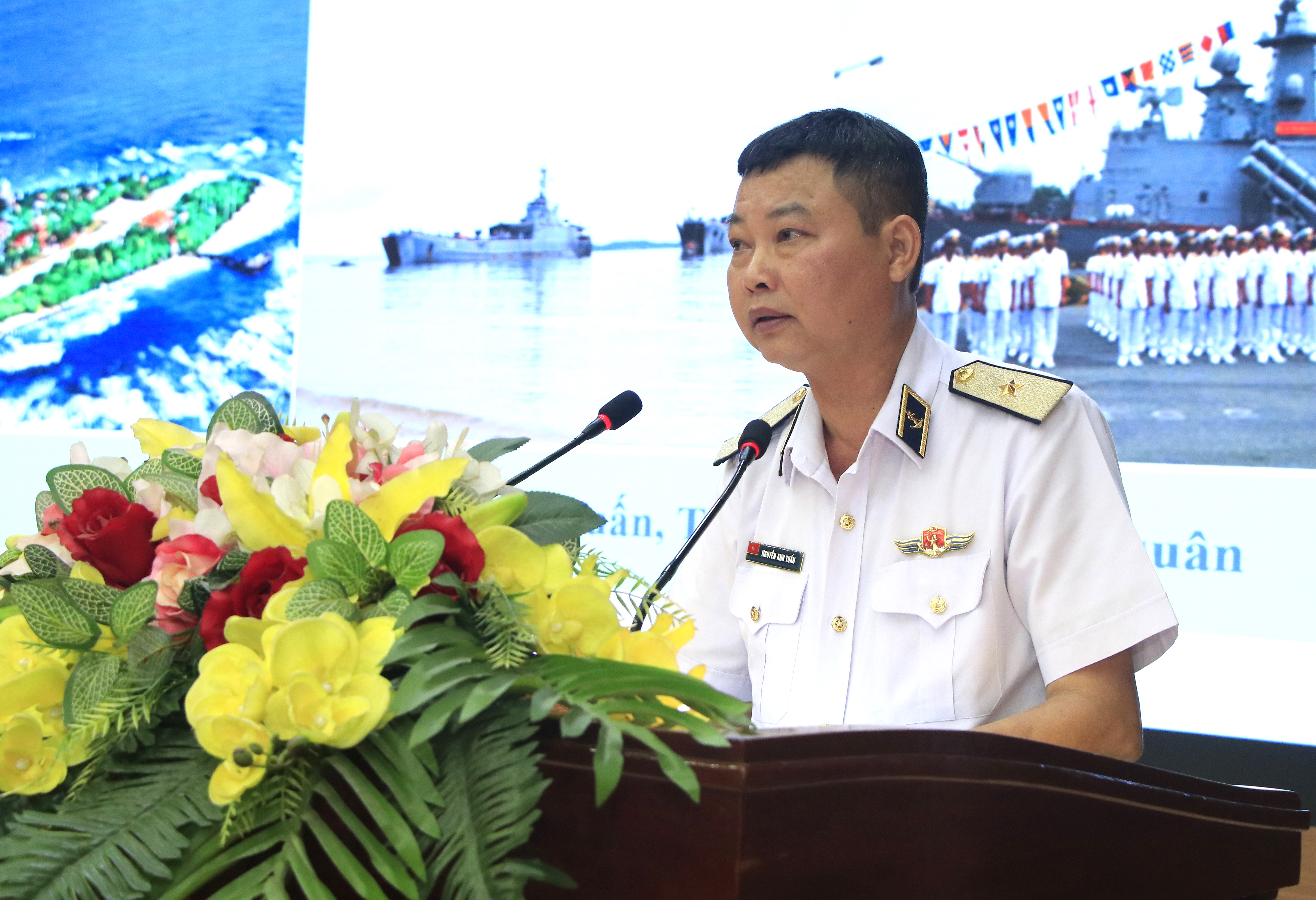 Chuẩn đô đốc Nguyễn Anh Tuấn, Tư lệnh Vùng 2 Hải quân phát biểu tại hội nghị.