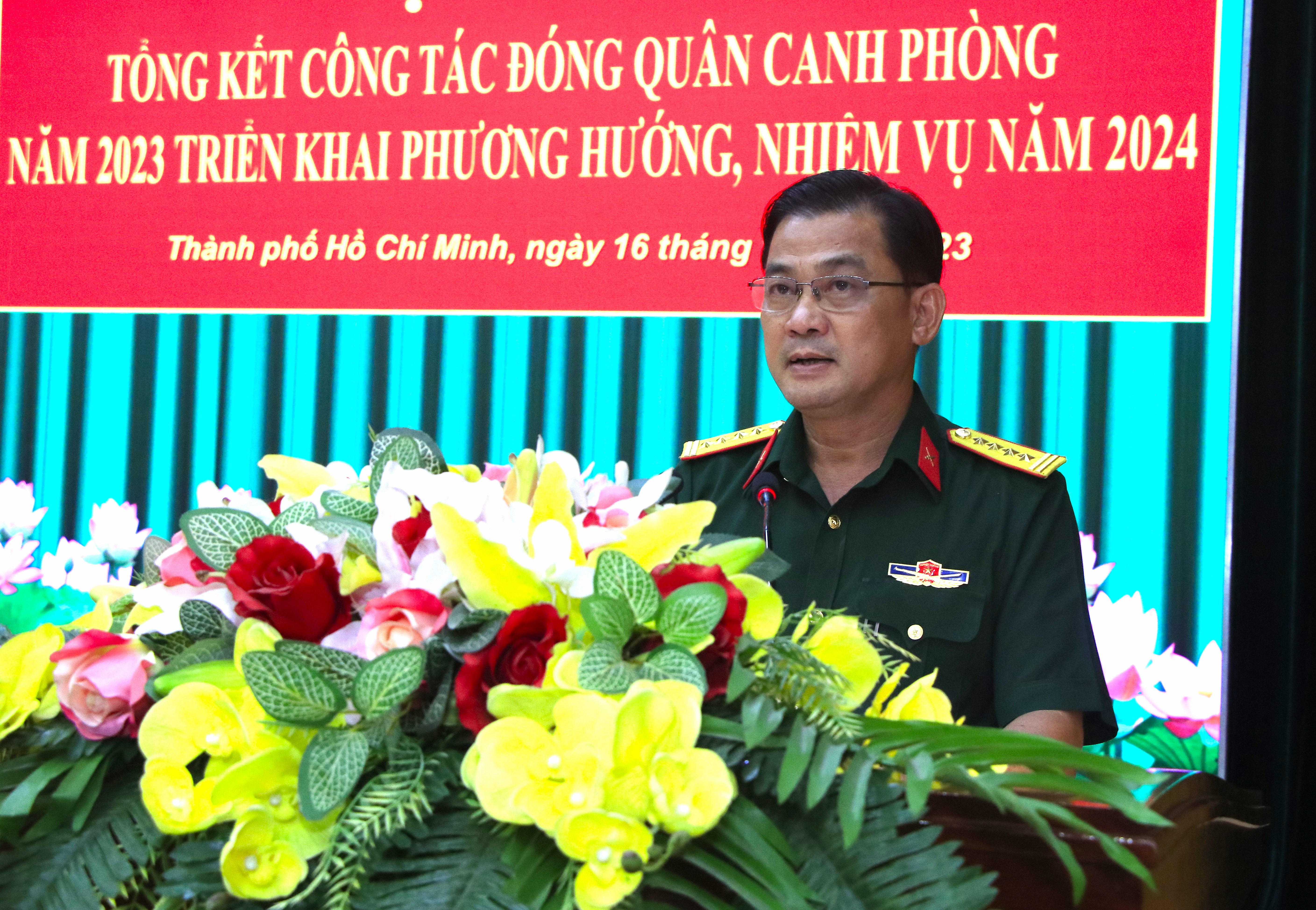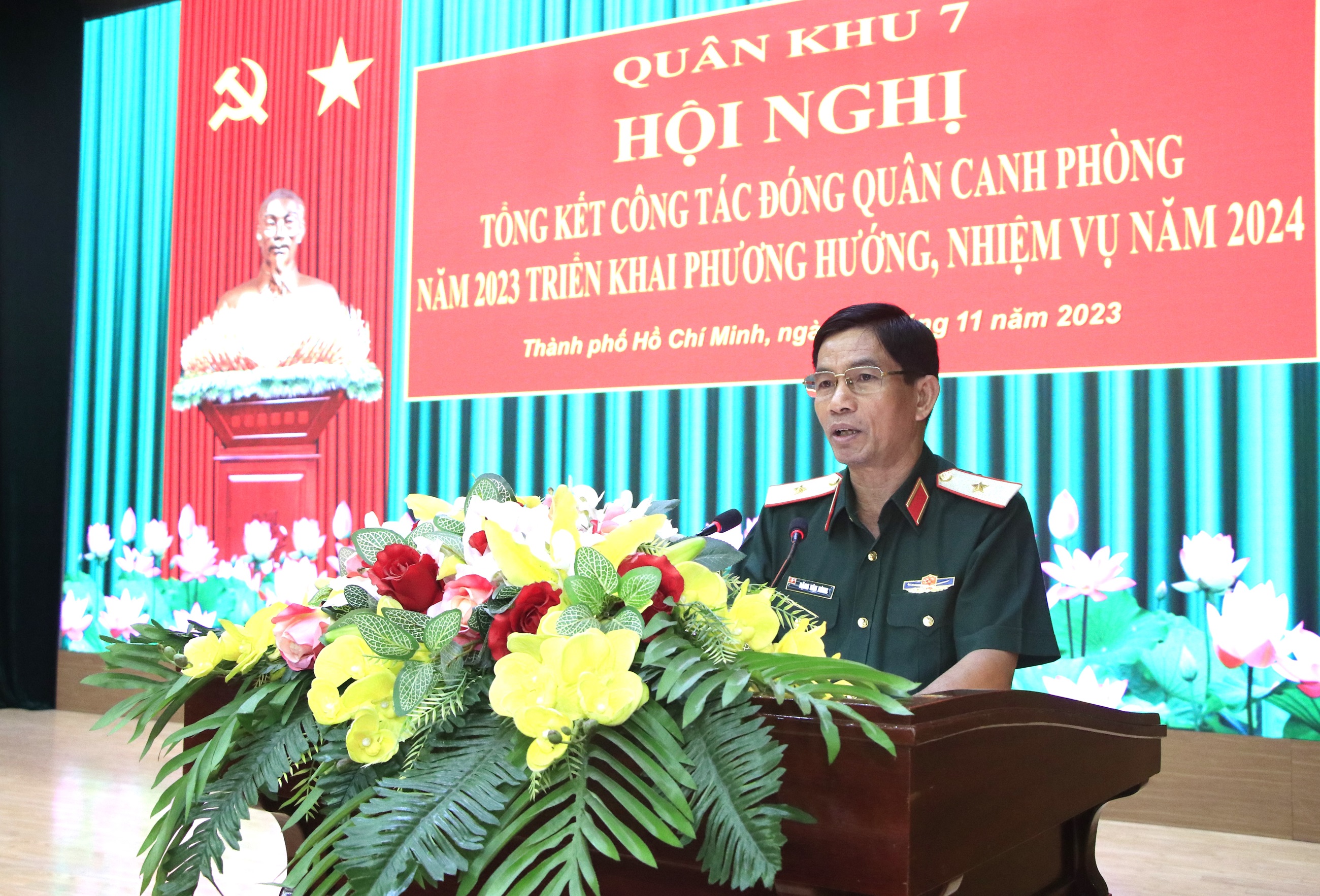 Năm 2024 là năm đất nước diễn ra nhiều sự kiện chính trị quan trọng, mỗi cán bộ, chiến sĩ trong LLVT Quân khu 7 và các đơn vị đóng quân trên địa bàn Quân khu luôn nâng cao tinh thần cảnh giác cách mạng, phấn đấu hoàn thành tốt nhiệm vụ được giao, trong đó đóng quân canh phòng là nhiệm vụ quan trọng. Đồng chí Phó Tư lệnh, Tham mưu trưởng Quân khu 7 yêu cầu, các đơn vị tiếp tục nâng cao chất lượng sẵn sàng chiến đấu và chiến đấu, giữ nghiêm kỷ luật Quân đội, đẩy mạnh xây dựng nề nếp chính quy, chấp hành kỷ luật. Chủ động phối hợp với các đơn vị của Bộ và Quân khu đóng quân trên địa bàn, tạo nên bước chuyển biến mới về chất lượng tổng hợp sức mạnh chiến đấu. Tích cực tham gia xây dựng, củng cố thế trận khu vực phòng thủ của địa phương ngày càng vững chắc; xây dựng và tổ chức luyện tập các phương án chiến đấu bảo vệ cơ quan, đơn vị, chú trọng luyện tập cho lực lượng tuần tra canh gác, kiểm soát quân sự xử trí thành thạo các tình huống có thể xảy ra trong đóng quân canh phòng.