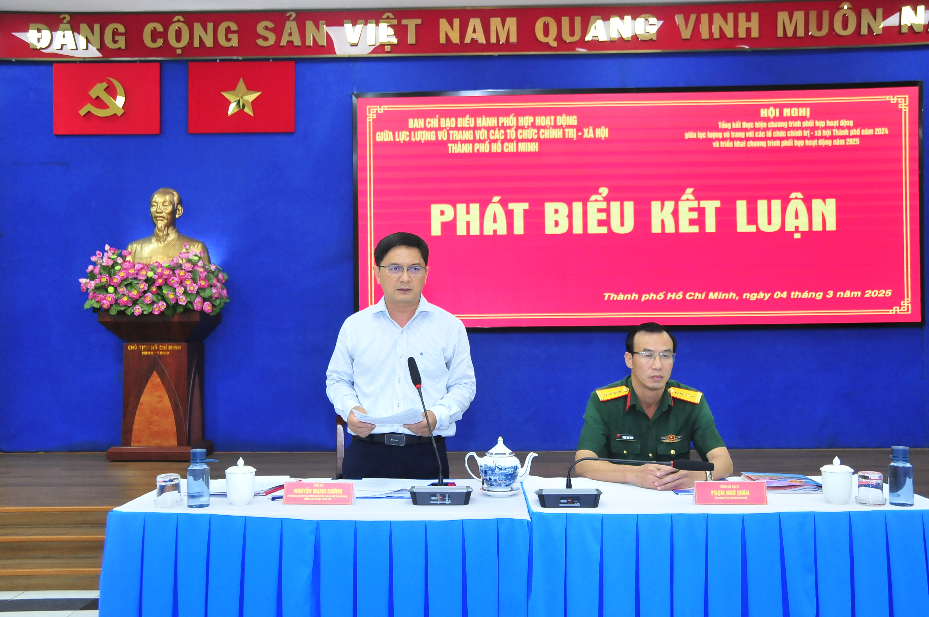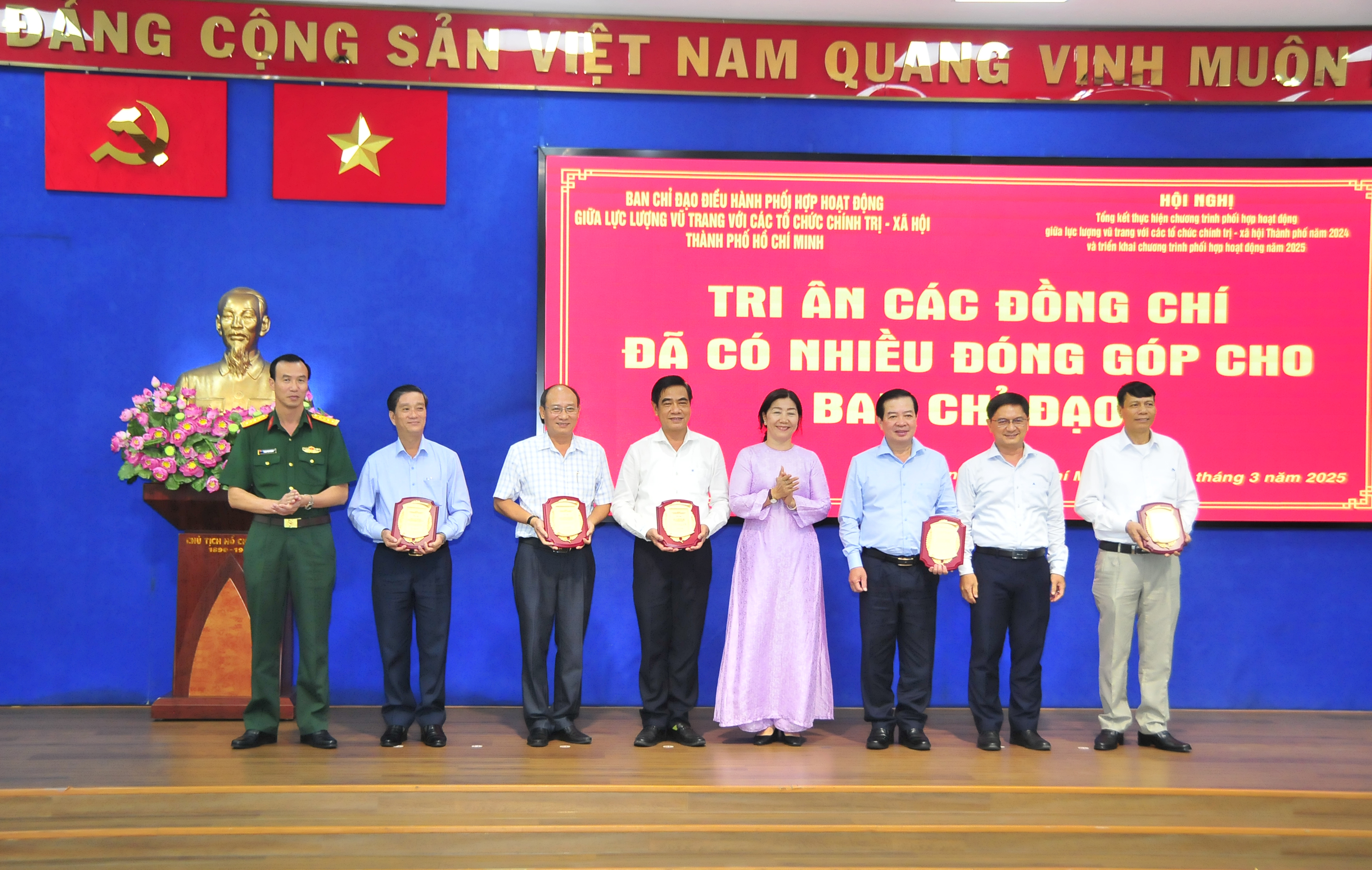(QK7 Online) - Ngày 4/3, Ban Chỉ đạo điều hành phối hợp hoạt động giữa lực lượng vũ trang với các tổ chức chính trị - xã hội Thành phố Hồ Chí Minh (Ban Chỉ đạo) tổng kết chương trình phối hợp năm 2024 và triển khai phương hướng năm 2025.
