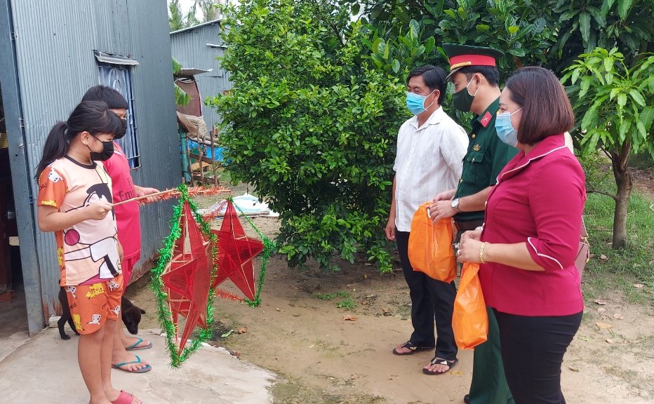 Mỗi phần quà trị giá 100.000 đồng gồm kẹo bánh và lồng đèn được đơn vị trích từ quỹ tăng gia sản xuất cùng với vận động các nhà hảo tâm.