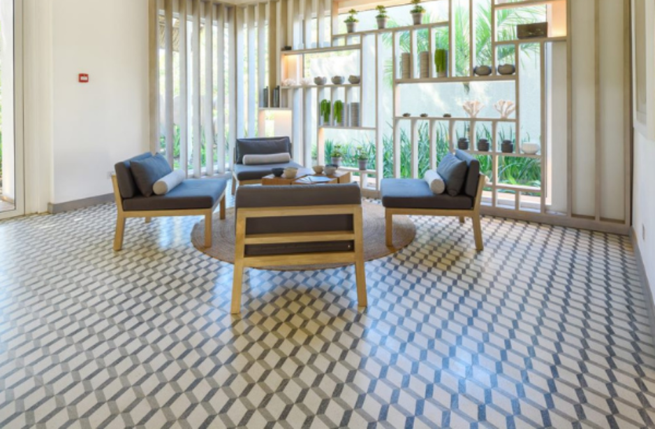 Gạch terrazzo bền bỉ và dễ bảo dưỡng, khiến nó trở thành lựa chọn lý tưởng cho các khu vực có nhiều người di chuyển.
