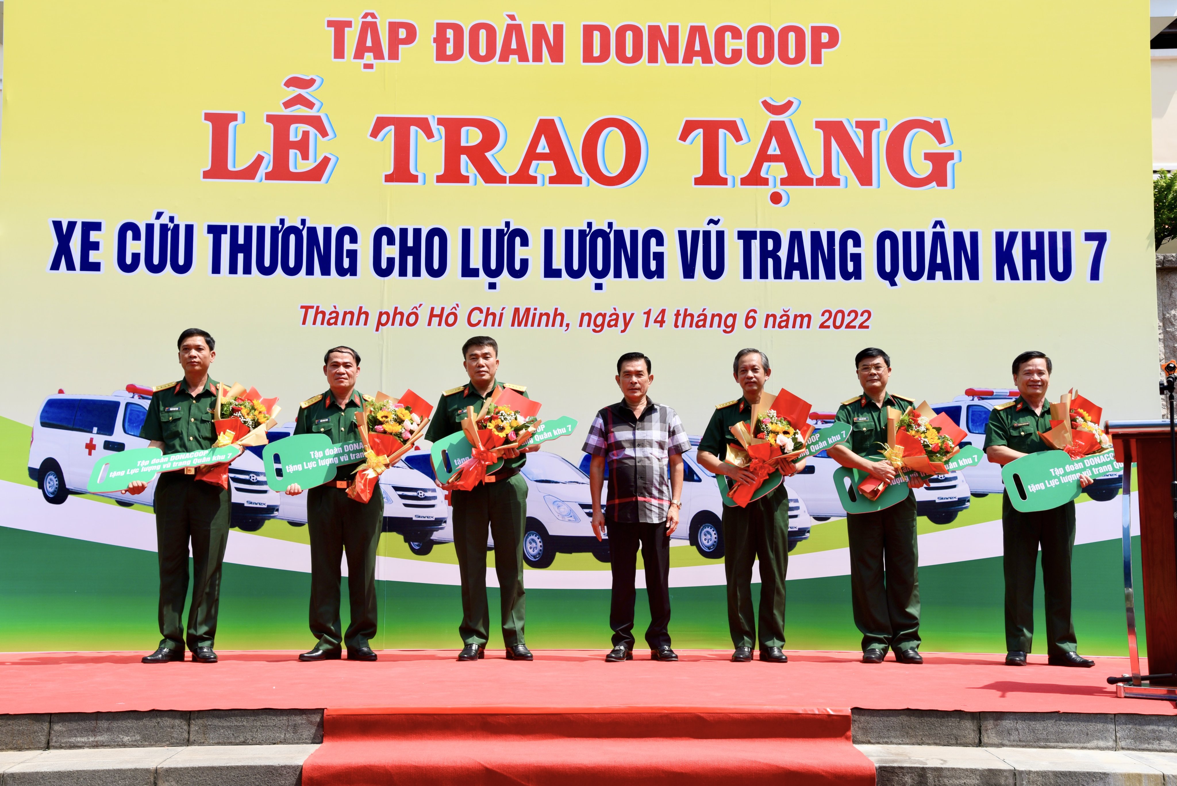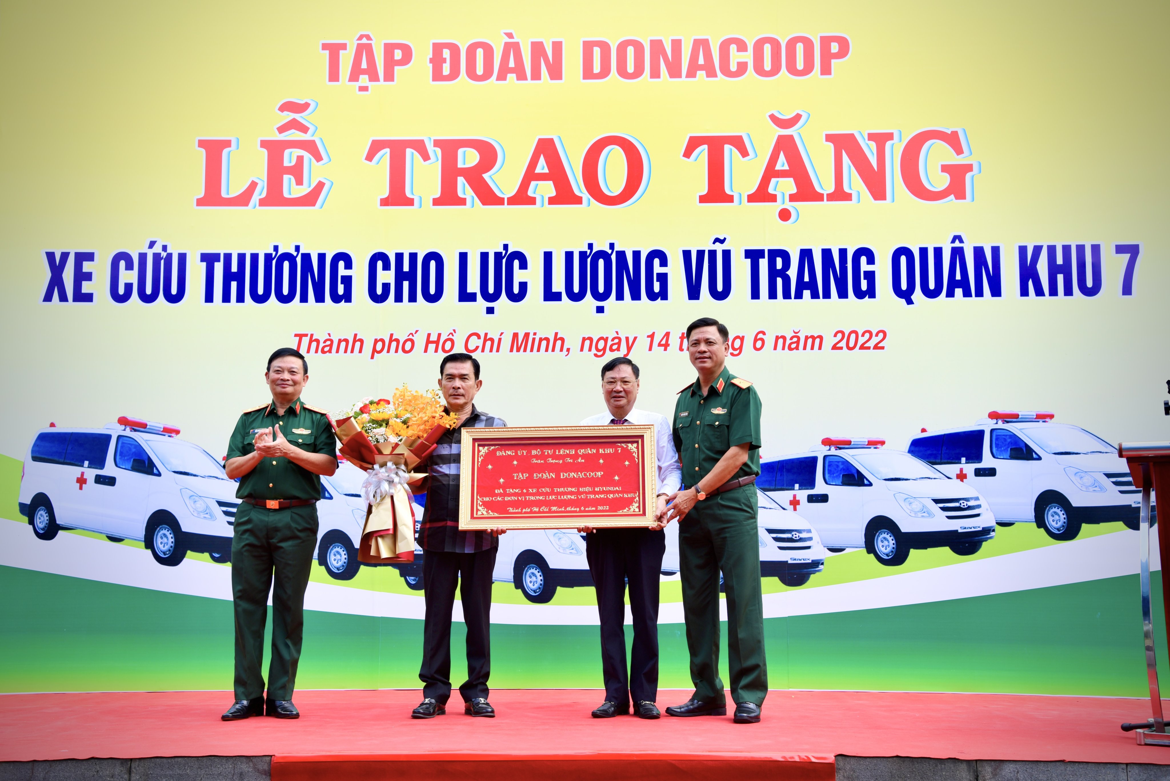 Tiếp nhận xe cứu thương tại buổi lễ, Đại tá Trần Ngọc Minh, Sư đoàn trưởng, Sư đoàn 302 đại diện các đơn vị trong LLVT Quân khu nhận xe phát biểu: Tập đoàn DonaCoop trao tặng xe cứu thương cho các đơn vị trong LLVT Quân khu 7 là một việc làm có ý nghĩa to lớn, giúp đơn vị vừa bảo đảm thực hiện nhiệm vụ huấn luyện, sẵn sàng chiến đấu, xây dựng đơn vị, vừa chăm lo sức khỏe, đời sống cán bộ, chiến sĩ, công nhân viên quốc phòng, sẵn sàng xử lý các tình huống về sức khỏe tại đơn vị; vừa tăng cường khả năng cơ động, hỗ trợ Nhân dân trên địa bàn xử trí các tình huống thiên tai, dịch bệnh, thảm họa; góp phần hoàn thành xuất sắc các nhiệm vụ được giao, tăng cường sức mạnh khu vực phòng thủ, tăng cường thế trận lòng dân.