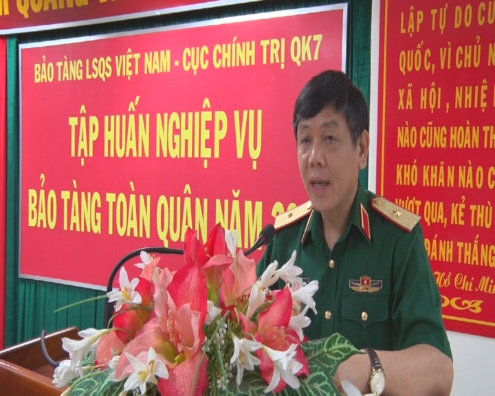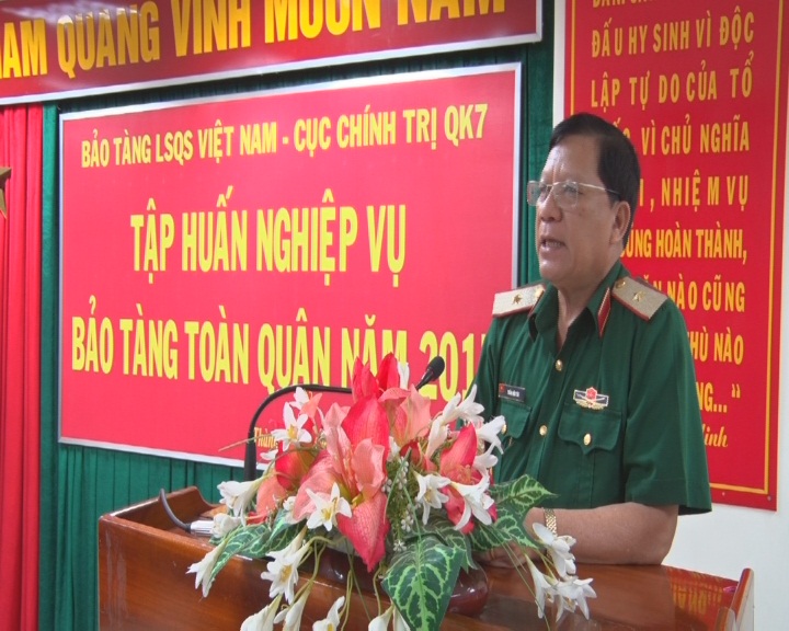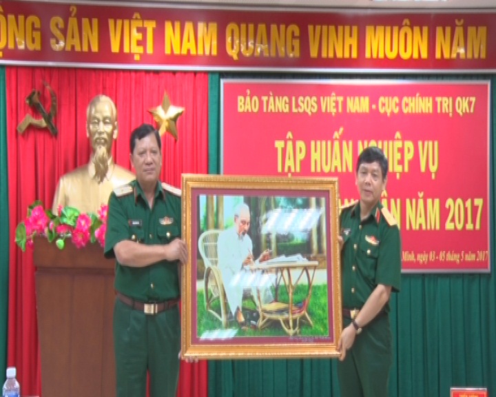 (QK7 Online) Sáng ngày 4/5/2017, tại Tp. Hồ Chí Minh, Bảo tàng Lịch sử Quân sự Việt Nam phối hợp với Cục Chính trị Quân khu 7 tổ chức tập huấn nghiệp vụ Bảo tàng toàn quân năm 2017 với chủ đề “Nâng cao chất lượng công tác trưng bày và ứng dụng công nghệ thông tin vào các hoạt động nghiệp vụ của Bảo tàng”. Thiếu tướng, tiến sĩ Nguyễn Xuân Năng, giám đốc Bảo tàng Lịch sử Quân sự Việt Nam và Thiếu tướng Trần Hữu Tài, Phó Chủ nhiệm Chính trị Quân khu 7 tới dự.