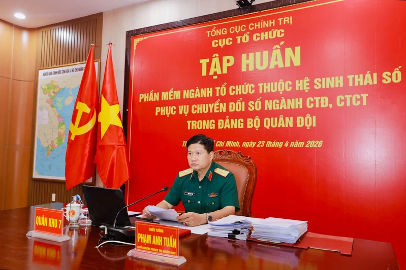 (QK7 Online) - Ngày 23/4, Cục Tổ chức, Tổng cục Chính trị Quân đội nhân dân Việt Nam phối hợp với Viện Công nghệ thông tin - Điện tử, Viện Khoa học và Công nghệ Bộ Tổng Tham mưu tổ chức tập huấn triển khai thử nghiệm phần mềm ngành Tổ chức phục vụ chuyển đổi số ngành công tác Đảng, công tác chính trị (CTĐ, CTCT) trong Đảng bộ Quân đội. Dự và chỉ đạo tập huấn có Thiếu tướng Lưu Quyết Thắng, Phó Cục trưởng Cục Tổ chức, Tổng Cục Chính trị Quân đội Nhân dân Việt Nam. Dự tập huấn có Đại tá Lê Minh Đức, Phó Viện trưởng Viện Công nghệ thông tin - Điện tử, Viện Khoa học và Công nghệ Bộ Tổng Tham mưu.