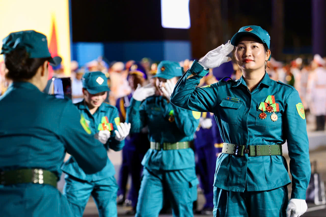 Nữ dân quân tự vệ Nguyễn Thị Thơm bày tỏ “Tham gia diễu binh lần này là niềm vinh dự rất lớn đối với tôi và đồng đội. Chúng tôi đã rèn luyện trong nhiều tháng, từ những buổi nắng gắt trên thao trường đến hợp luyện đêm khuya, ai cũng quyết tâm thể hiện thật tốt trong ngày trọng đại của đất nước. Dù mệt, nhưng khi khoác lên mình bộ quân phục và bước đều giữa lòng thành phố, tôi thấy rất tự hào".