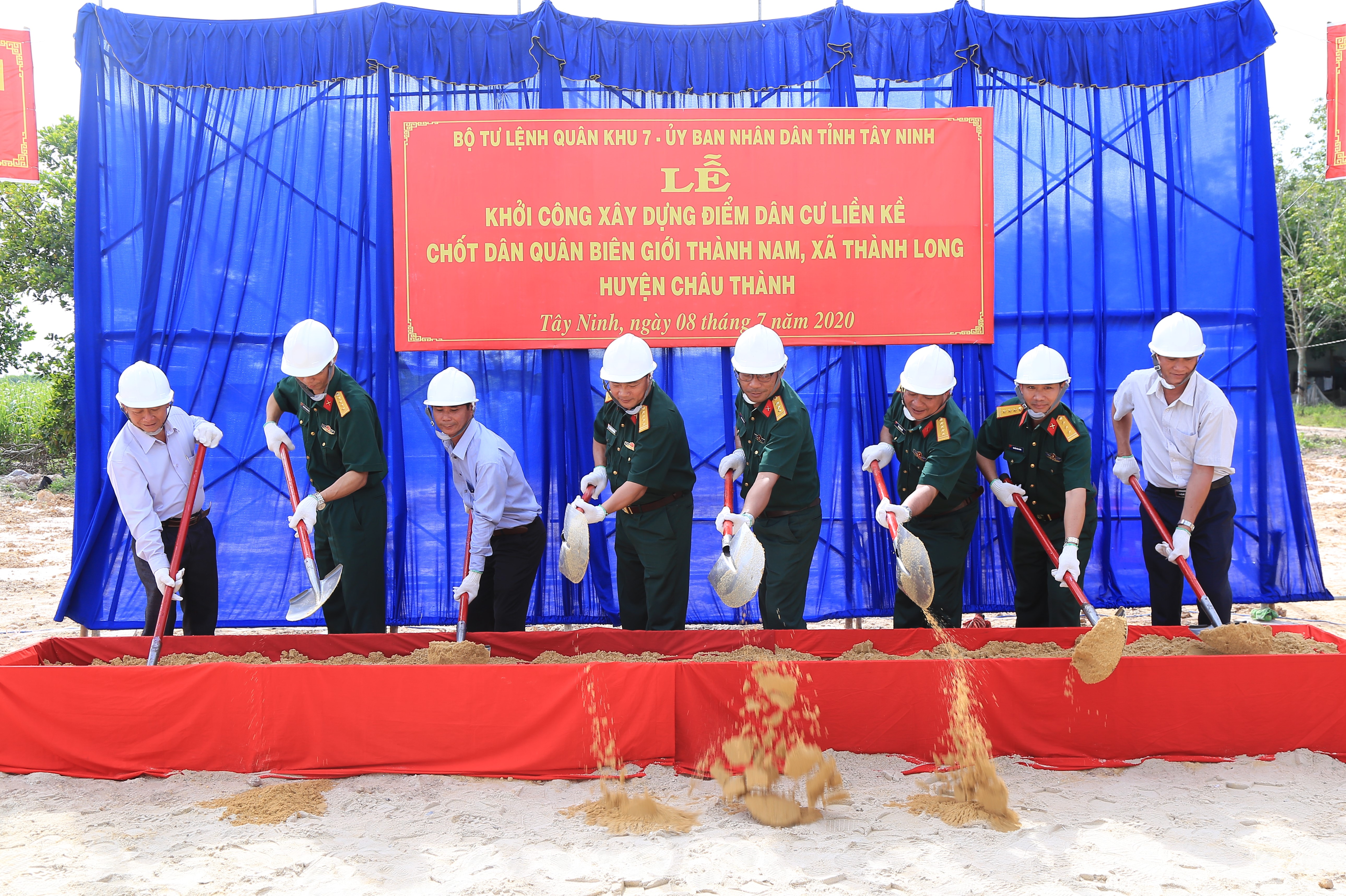 (QK7 Online) - Ngày 8/7, Bộ Chỉ huy Quân sự tỉnh Tây Ninh phối hợp với Bộ Tư lệnh Thành phố Hồ Chí Minh và các huyện Châu Thành, Tân Biên tổ chức khởi công xây dựng 2 điểm dân cư liền kề chốt dân quân biên giới Thành Nam, xã Thành Long huyện Châu Thành và chốt dân quân Cầu Ván, xã Tân Lập huyện Tân Biên (giai đoạn 2, từ năm 2020 – 2022).