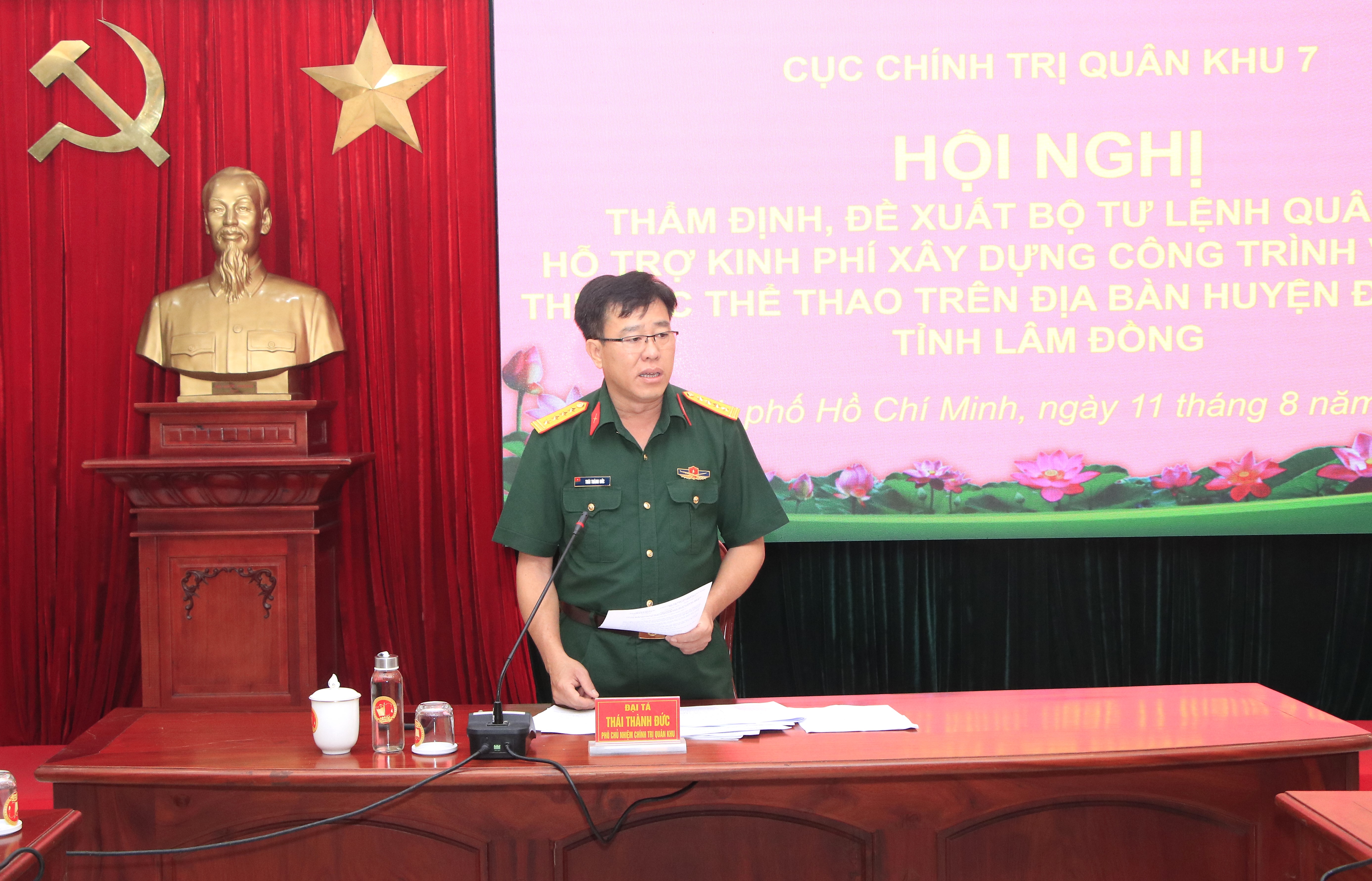 Đại tá Thái Thành Đức, Phó Chủ nhiệm Chính trị Quân khu chủ trì hội nghị.