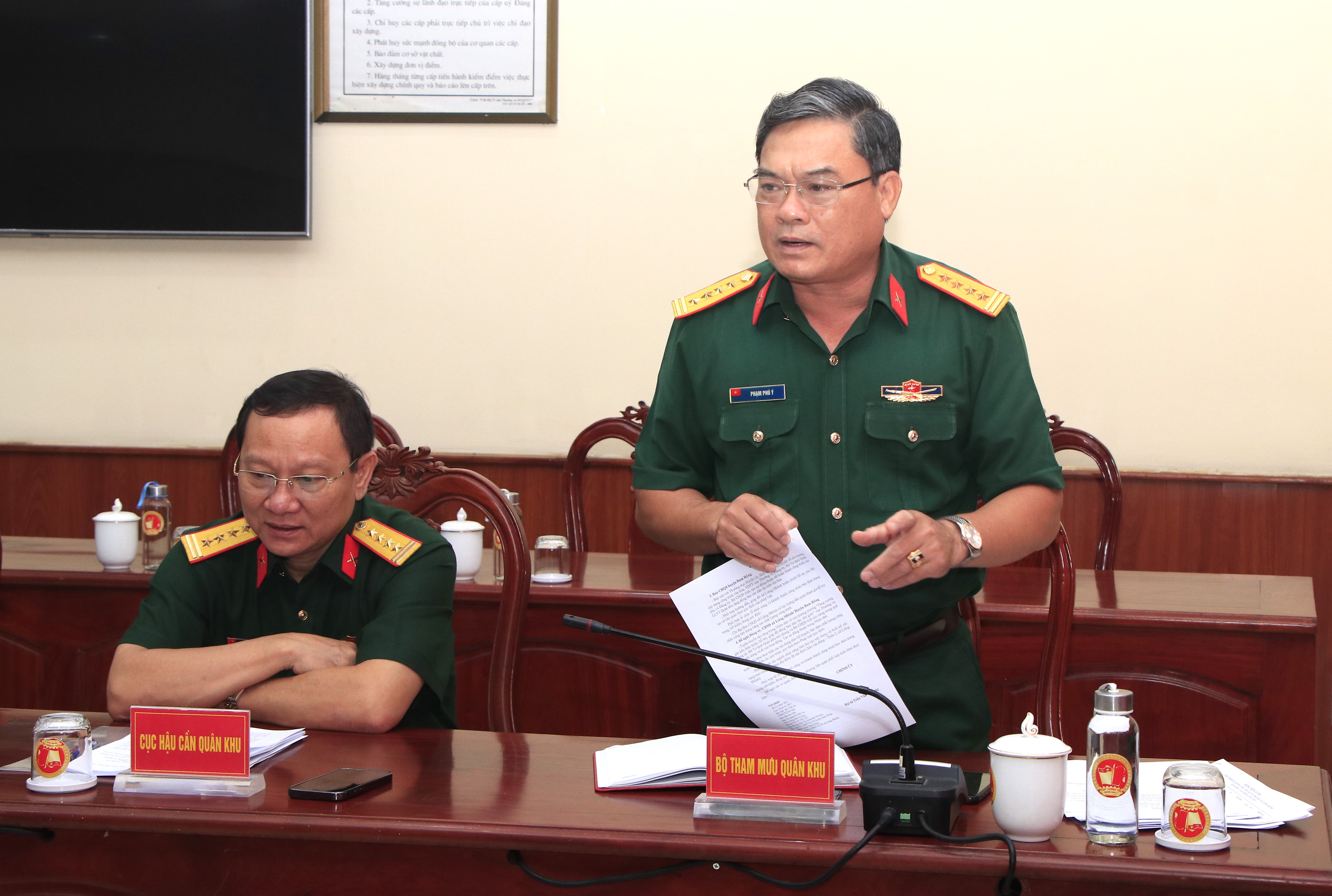 Đại tá Phạm Phú Ý, Phó Tham mưu trưởng Quân khu phát biểu tại hội nghị.