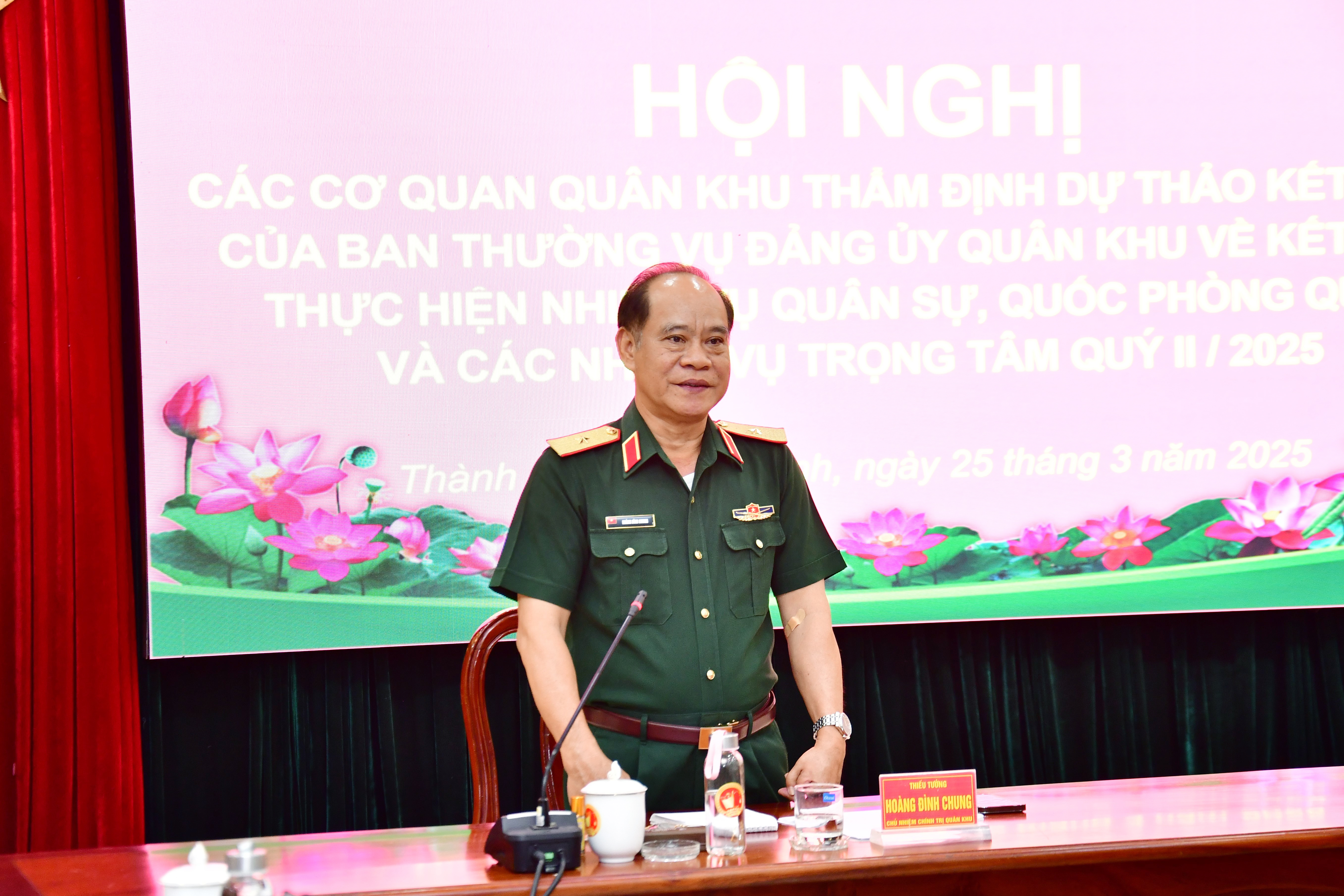 Thẩm định dự thảo kết luận của Ban Thường vụ Đảng ủy Quân khu về kết quả thực nhiệm vụ quân sự, quốc phòng quý I năm 2025