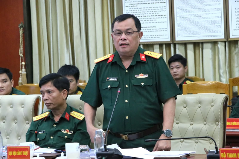 Đại tá Nguyễn Thanh Tâm, Chủ nhiệm Hậu cần - Kỹ thuật Quân khu phát biểu tại hội nghị.