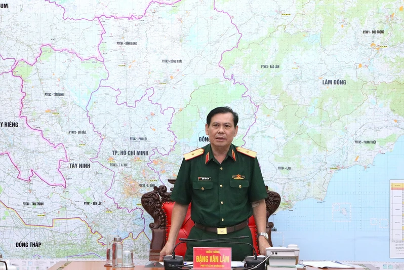 Thiếu tướng Đặng Văn Lẫm, Phó Tư lệnh Quân khu 7 chủ trì hội nghị.