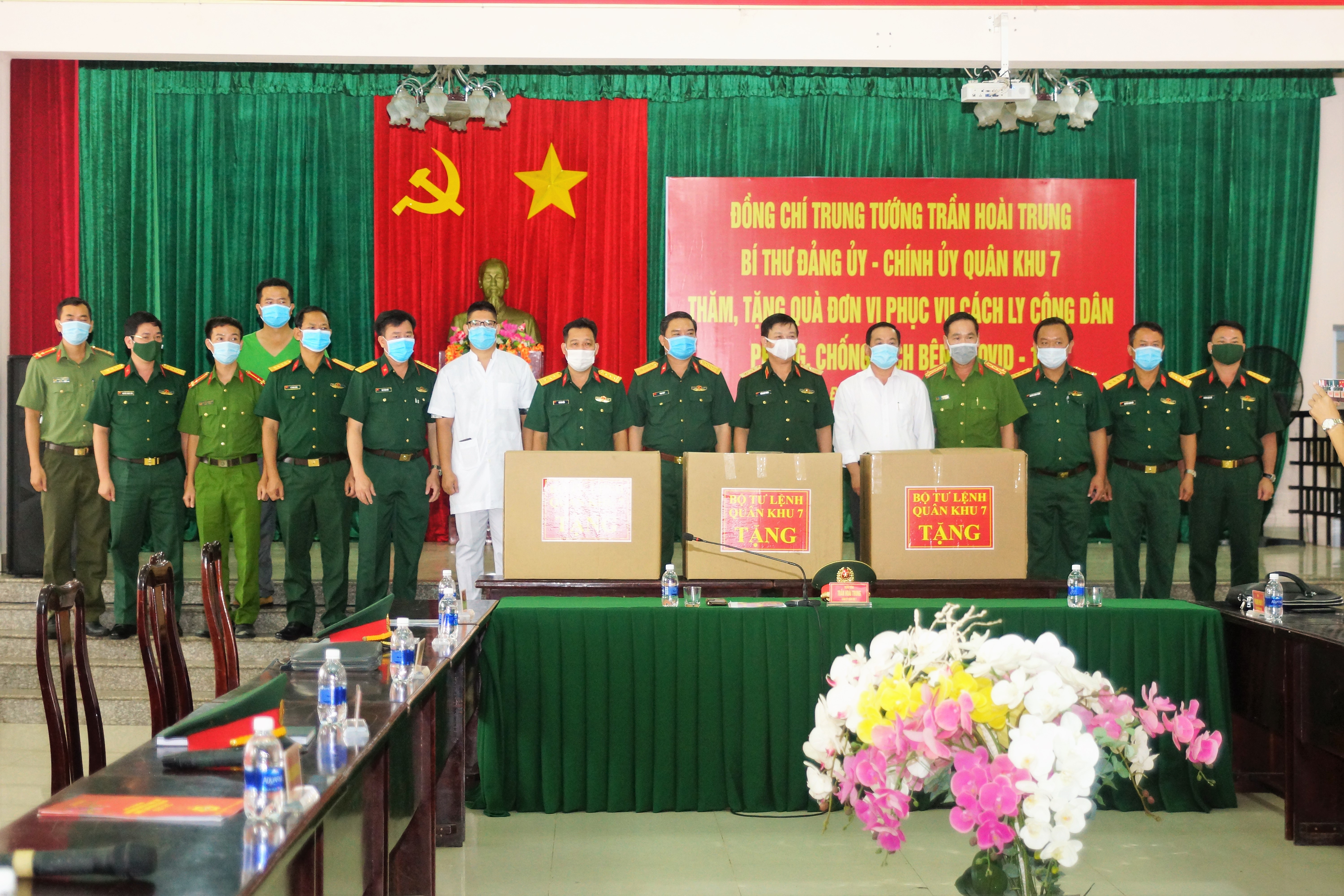 Trung tướng Trần Hoài Trung, Bí thư Đảng ủy, Chính ủy Quân khu 7 thăm, tặng quà đơn vị phục vụ cách ly công dân phòng chống dịch bệnh Covid-19