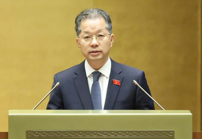Chánh án Tòa án nhân dân tối cao trình bày Báo cáo giải trình, tiếp thu, chỉnh lý dự thảo Luật Tòa án chuyên biệt tại Trung tâm tài chính quốc tế. (Ảnh: SGGP)
