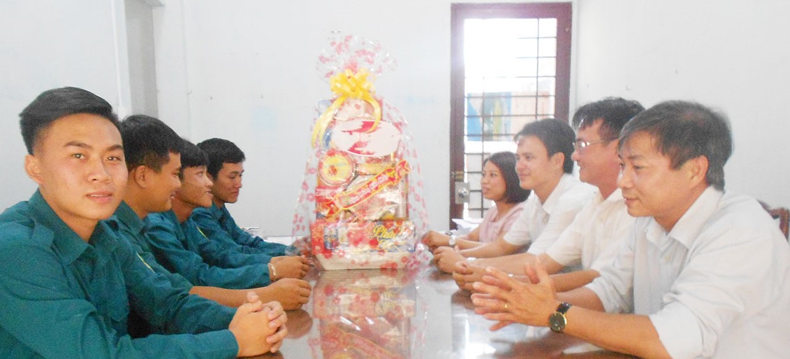 Lãnh đạo thị trấn Tân Phú gặp gỡ và động viên thanh niên Lê Quốc Đại ở khu phố Thắng Lợi trước khi lên đường nhập ngũ.
