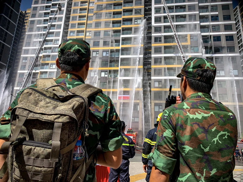 (QK7 Online) - Sáng 14/11, tại Khu dân cư và Công viên Phước Thiện thuộc dự án Vinhomes Grand Park, Thành phố Hồ Chí Minh tổ chức diễn tập phương án chữa cháy, cứu nạn, cứu hộ quy mô lớn nhất năm 2025.