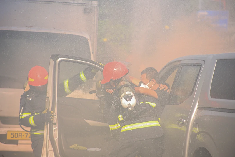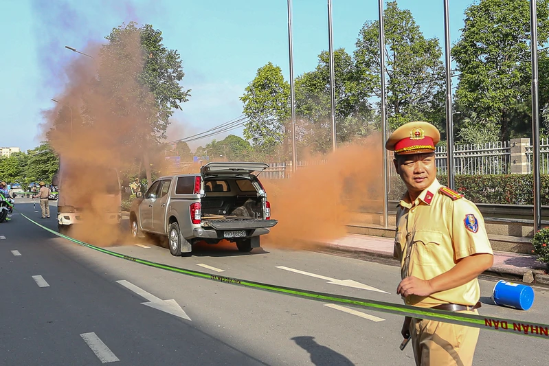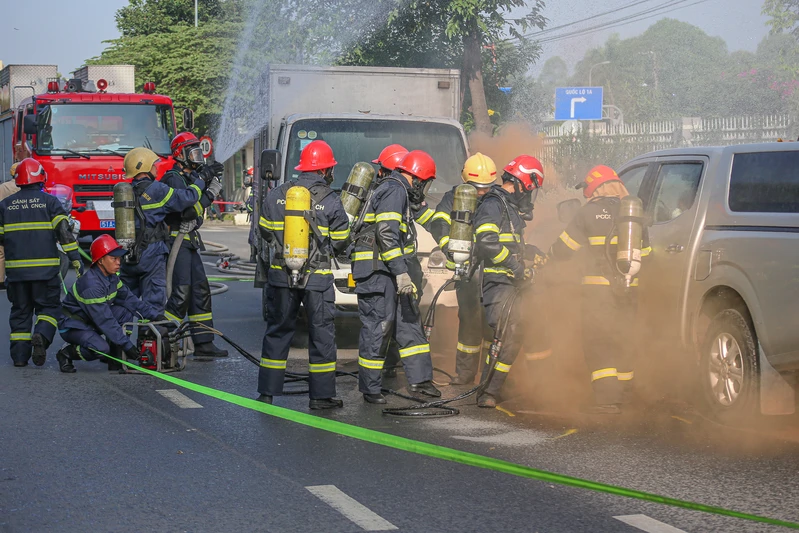 Lực lượng Cảnh sát Giao thông và Cảnh sát PCCC&CNCH được điều động đến hiện trường, triển khai quy trình xử lý tai nạn giao thông, đồng thời tổ chức phân luồng và bảo vệ hiện trường.