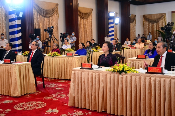 Lãnh đạo Đảng, Nhà nước, Chính phủ, TP Hồ Chí Minh chụp ảnh cùng các đại biểu dự lễ kỷ niệm.