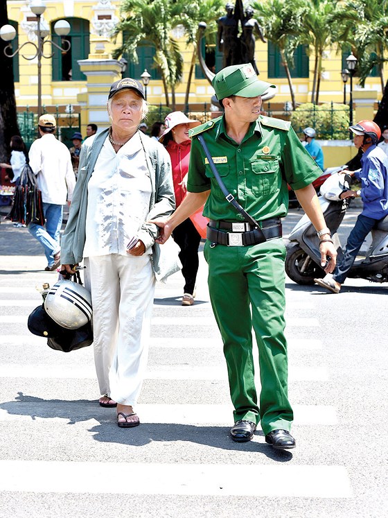 Anh Trần Hoàng (thanh niên xung phong TPHCM) hỗ trợ người già khiếm thị qua đường
