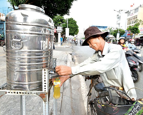 Bình trà đá nghĩa tình giúp khách bộ hành giải khát miễn phí