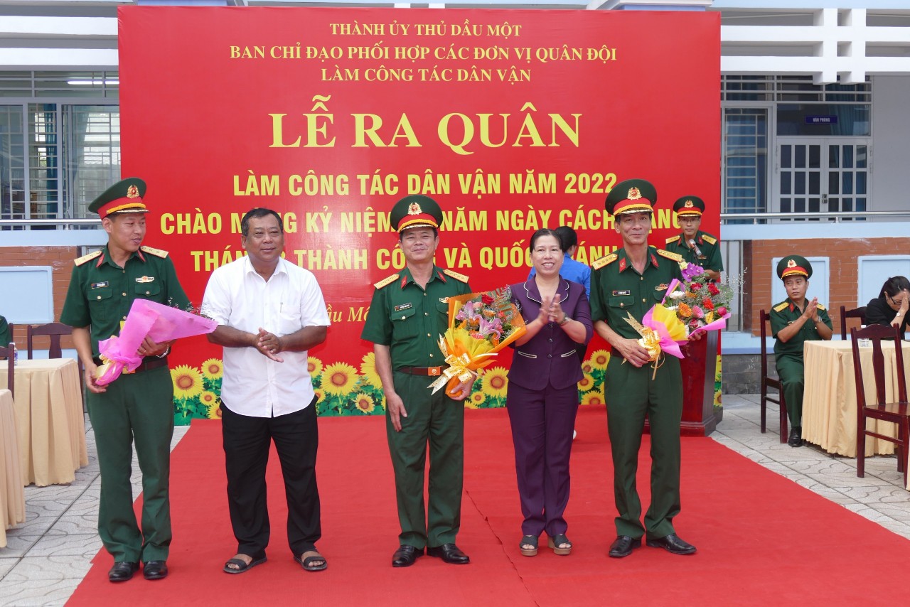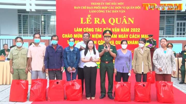 Tại buổi lễ ra quân, ban tổ chức tặng 30 phần quà cho người dân có hoàn cảnh khó khăn trên địa bàn 3 phường nói trên. Ngay sau buổi lễ ra quân, đội ngũ y, bác sĩ bệnh viện Medic Bình Dương khám bệnh, phát thuốc cho khoảng 150 người dân. Đồng thời, cán bộ, hội viên của các ban, ngành, đoàn thể của các địa phương; cán bộ chiến sĩ Trường Sĩ quan Công binh, Sư đoàn 7, Lữ tác chiến điện tử và LLVT thành phố Thủ Dầu Một ra quân dọn dẹp, trồng cây, tháo gỡ quảng cáo trái phép 2 bên tuyến đường Nguyễn Chí Thanh.