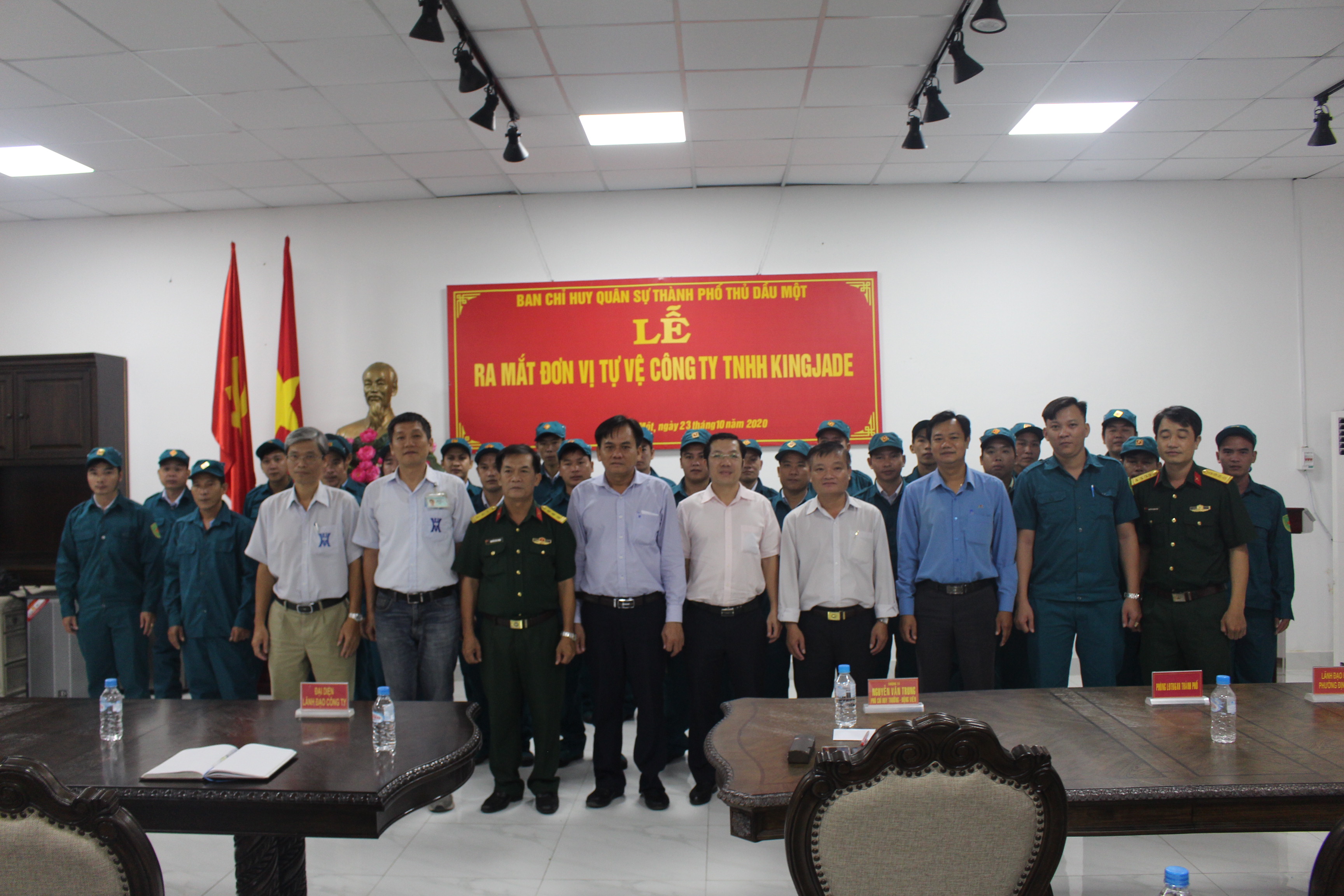 Tại buổi lễ, Ban CHQS Thành phố Thủ Dấu Một công bố quyết định thành lập và ra mắt lực lượng tự vệ Công ty TNHH KING JADE; giao nhiệm vụ cụ thể cho từng cơ quan, đơn vị và lực lượng tự vệ, tạo sự thống nhất trong lãnh đạo, chỉ đạo, chỉ huy và tổ chức xây dựng, huấn luyện, hoạt động của đơn vị tự vệ góp phần giữ vững an ninh chính trị, trật tự an toàn xã hội trên địa bàn doanh nghiệp đứng chân. Công bố quyết định bổ nhiệm cán bộ Trung đội trưởng, Tiểu đội trưởng...