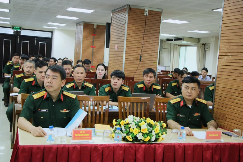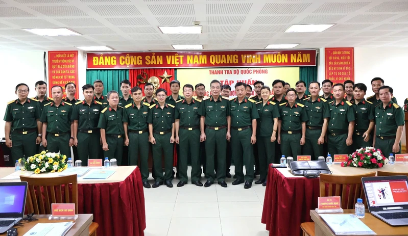 Thiếu tướng Nguyễn Văn Xiển, Phó Chánh Thanh tra Bộ Quốc phòng, Trưởng Ban tổ chức cùng các đồng chí tham gia lớp tập huấn.