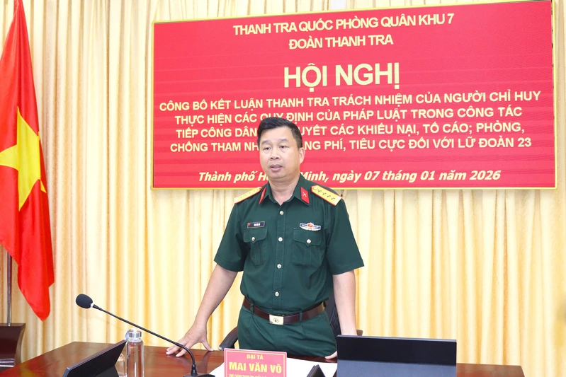 Đại tá Mai Văn Võ, Phó Chánh thanh tra Quốc phòng Quân khu công bố kết luận thanh tra đối với Lữ đoàn 23.