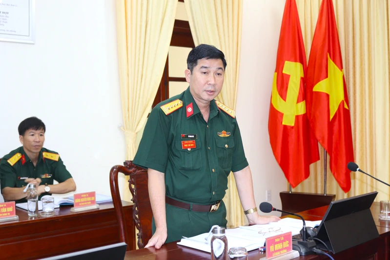 Đại tá Vũ Minh Đức, Lữ đoàn trưởng Lữ đoàn 23 phát biểu tại hội nghị.