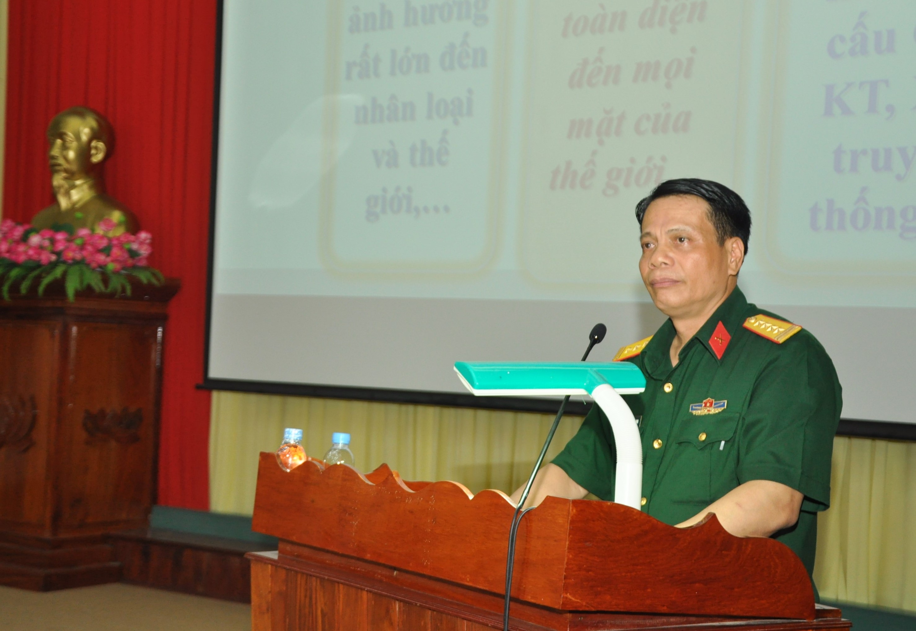 Đại tá Nguyễn Công Anh, Phó Chủ nhiệm Chính trị Quân khu 7 thông tin thời sự tại hội nghị.