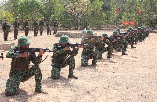 Tại thao trường của Trường Quân sự tỉnh Bình Thuận, những ngày cuối tháng 4, cái nắng như thiêu, như đốt, oi bức hầm hập. Mồ hôi luôn rịn ra làm cứng, dầy thêm bộ quân phục K17. Dù vậy nhưng các chiến sĩ mới luôn ra sức hăng say tập luyện. Thấm nhuần khẩu hiệu “thao trường đổ mồ hôi, chiến trường bớt đổ máu”, nhiều tân binh dù người đẫm mồ hôi nhưng vẫn cố gắng chăm chút từng động tác kỹ thuật. Mỗi góc thao trường là một tiểu đội với bài tập riêng theo sự hướng dẫn của các tiểu đội trưởng, trung đội trưởng.
