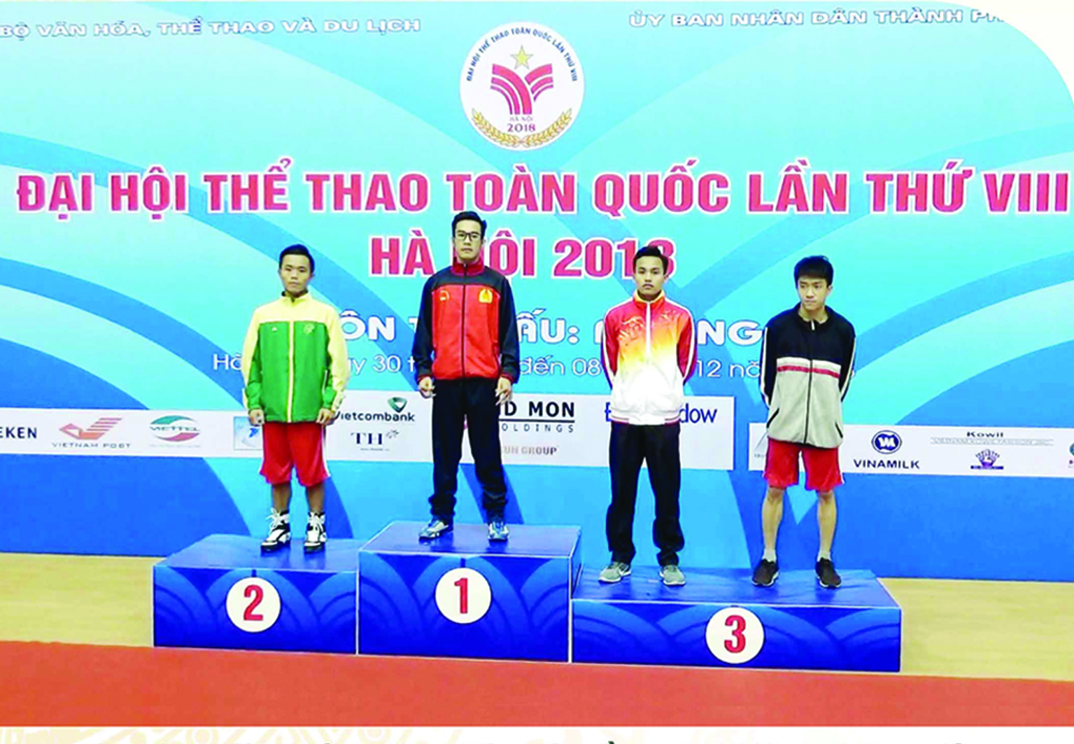 Vận động viên Huỳnh Ngọc Tân, đội Quyền Anh đạt Huy chương Vàng hạng cân 49 kg tại Đại hội Thể thao toàn quốc lần VIII năm 2018.