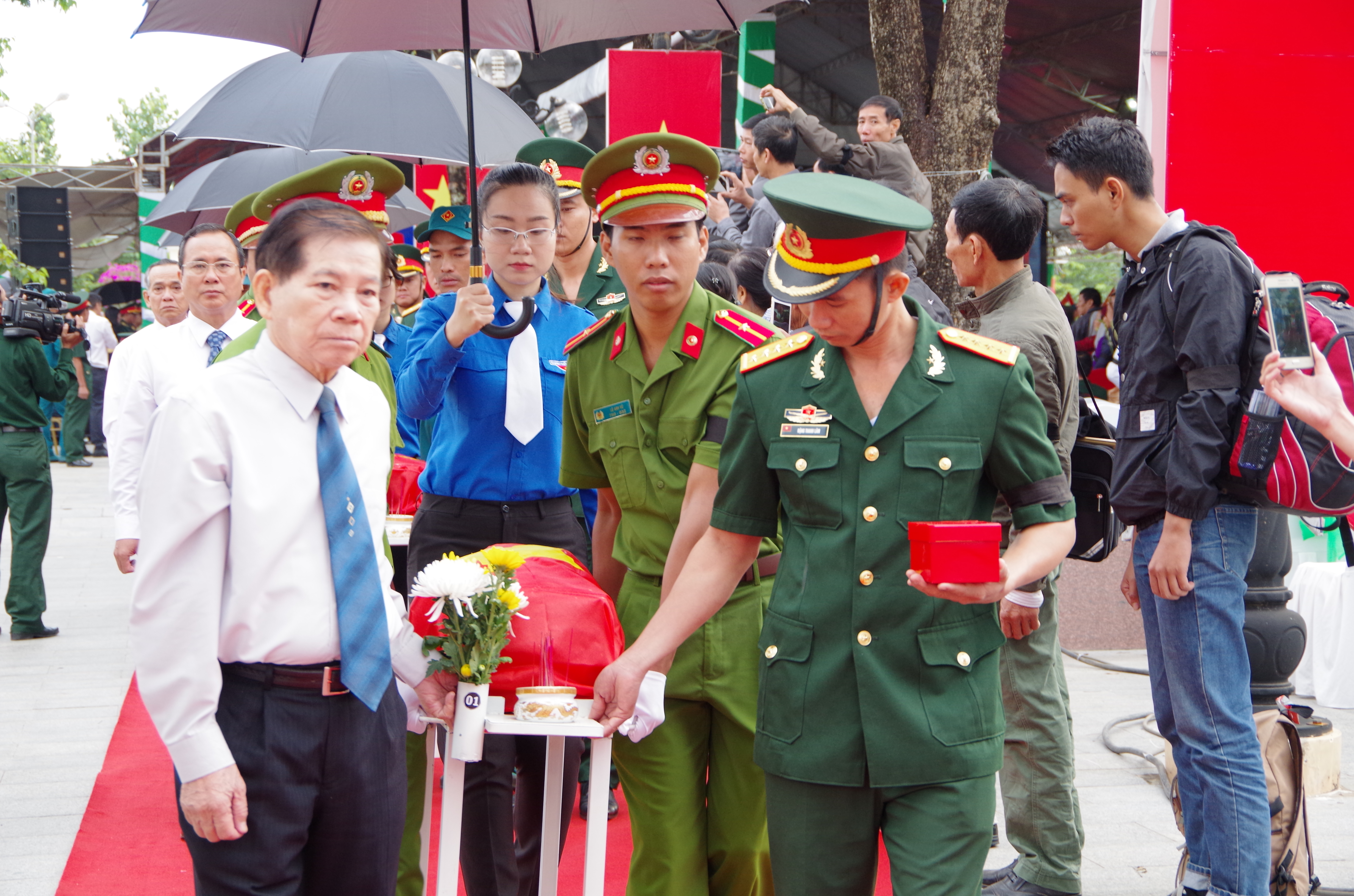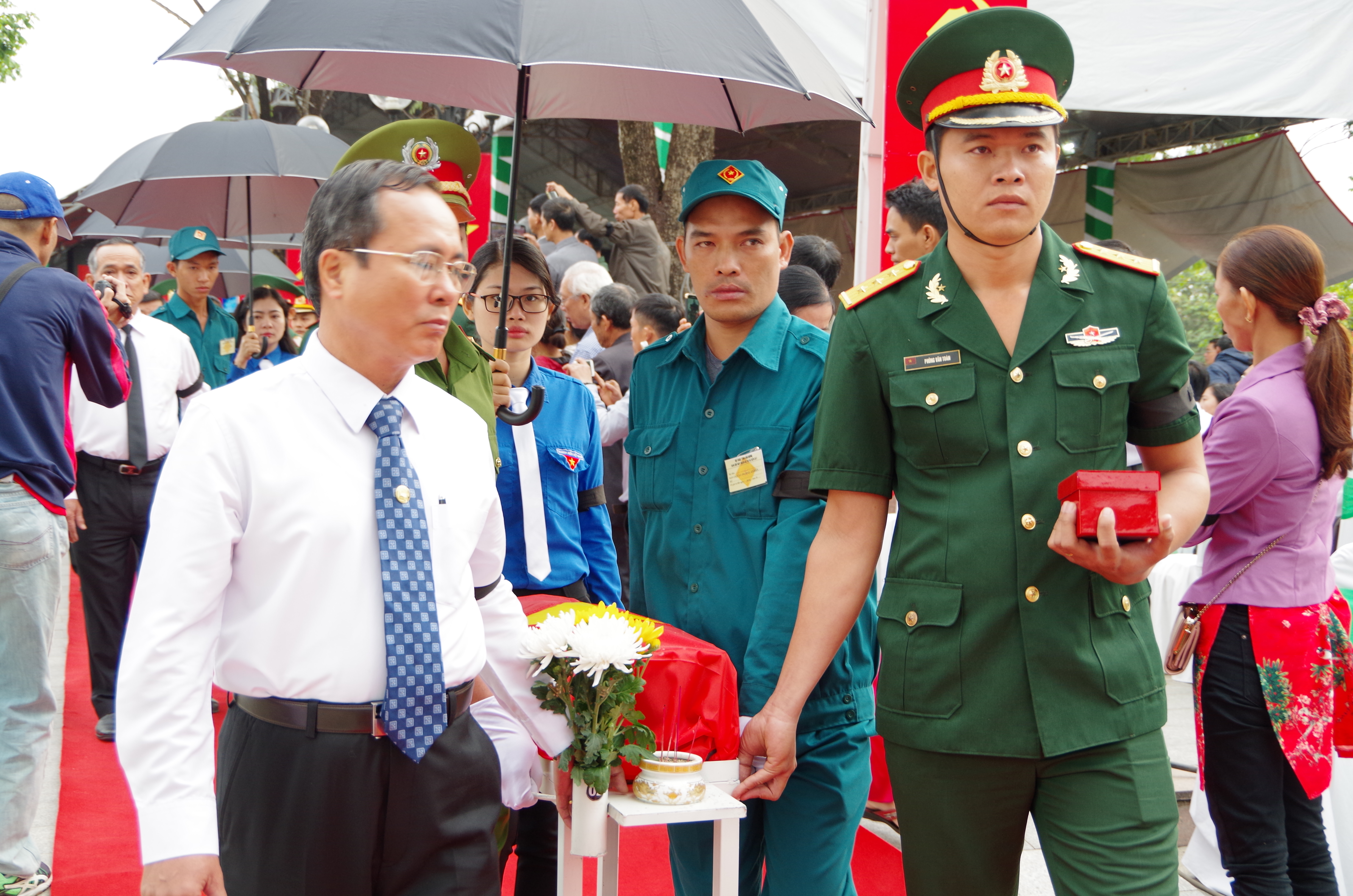 Lãnh đạo tỉnh Bình Dương tiễn hài cốt liệt sĩ.